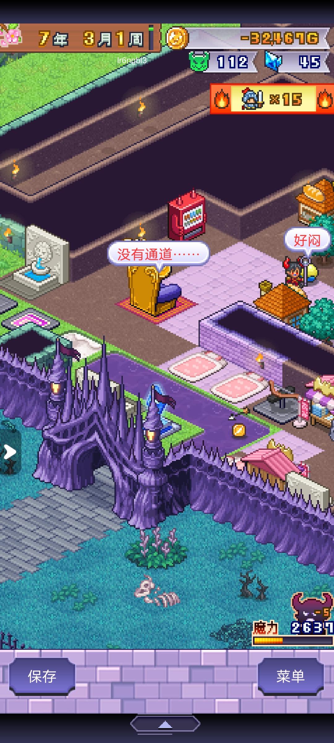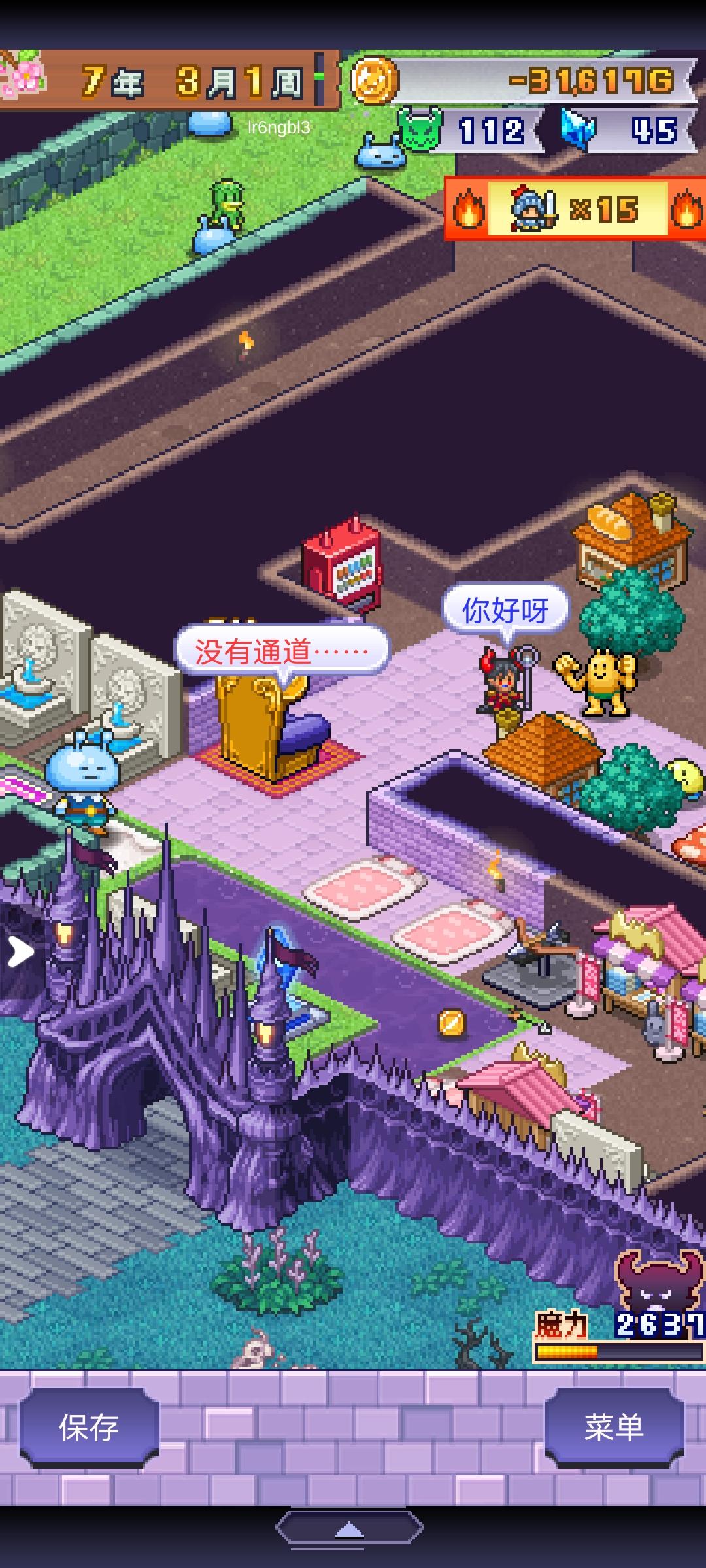 只讲第一档怎么过,通关一次后有继承会容易很多。1,房间人口和最小格子数:7格3人,11格4人,17格5人,25格6人,35格7人。三个一样的怪物在同一个房间涨全属性10%,房间超员扣全属性50%。2,怪物房间可以不通道路,方便冒对话框讨要礼物。经常送礼能提高勤奋度,勤奋度1:1加成魔力,是主要魔力来源,也是16年结算参考值之一。3,更新后,其他房间的宝箱会被打开,魔王房间的宝箱在魔王嗝屁前都
