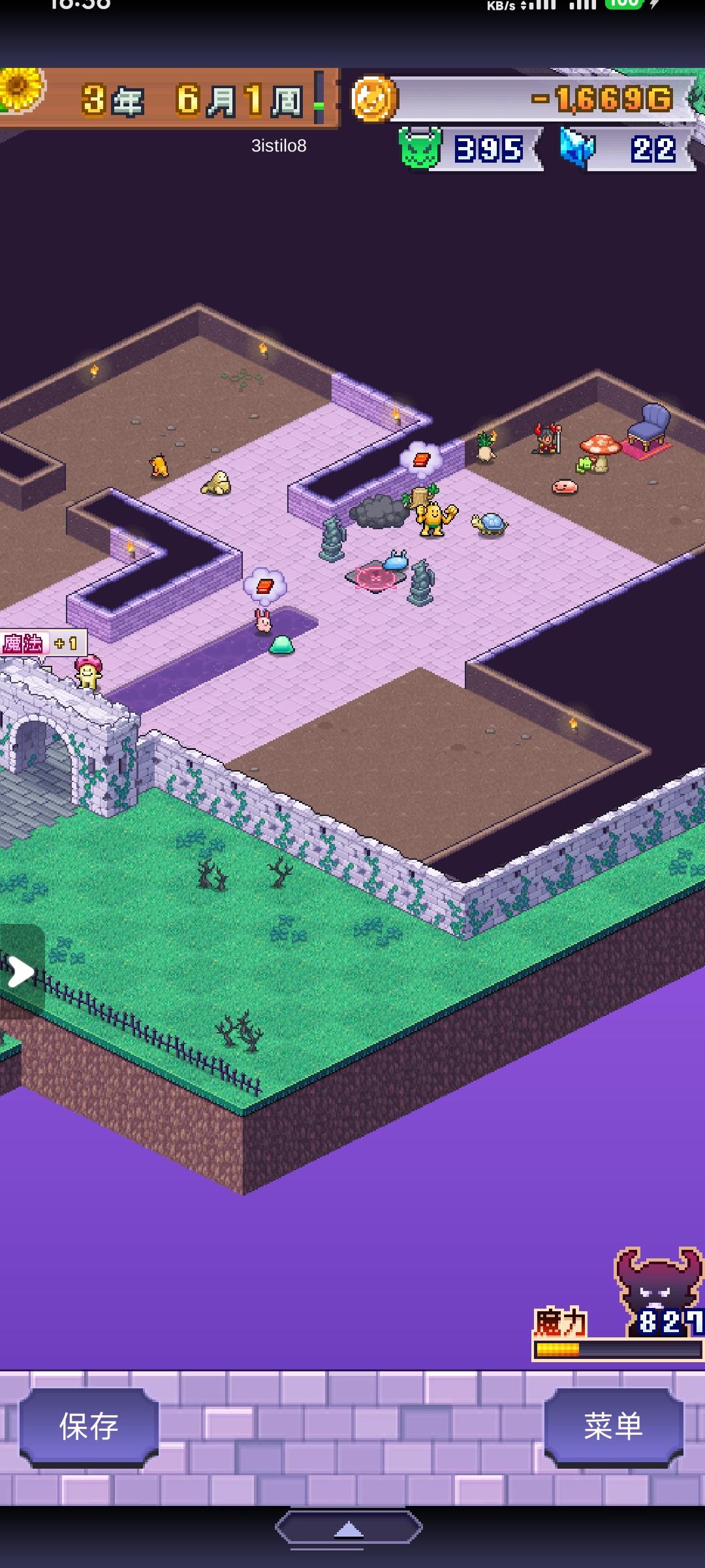 只讲第一档怎么过,通关一次后有继承会容易很多。1,房间人口和最小格子数:7格3人,11格4人,17格5人,25格6人,35格7人。三个一样的怪物在同一个房间涨全属性10%,房间超员扣全属性50%。2,怪物房间可以不通道路,方便冒对话框讨要礼物。经常送礼能提高勤奋度,勤奋度1:1加成魔力,是主要魔力来源,也是16年结算参考值之一。3,更新后,其他房间的宝箱会被打开,魔王房间的宝箱在魔王嗝屁前都