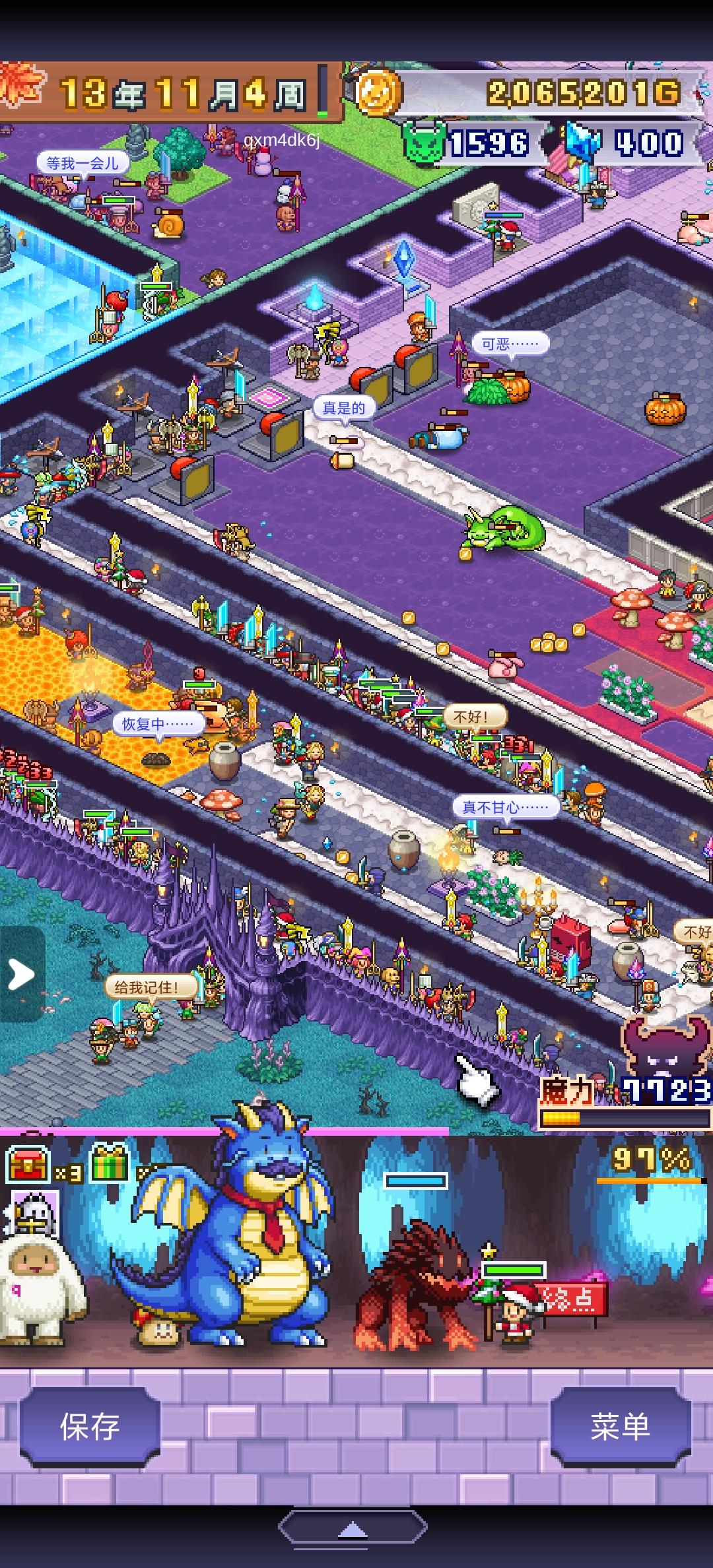 第一次玩,玩了两天,一个存档继承了个大史莱姆🌚,通关后第二存档还差一岁,先完成了5级城堡。好想要魔王啊,第一次打他居然说隐退了😶