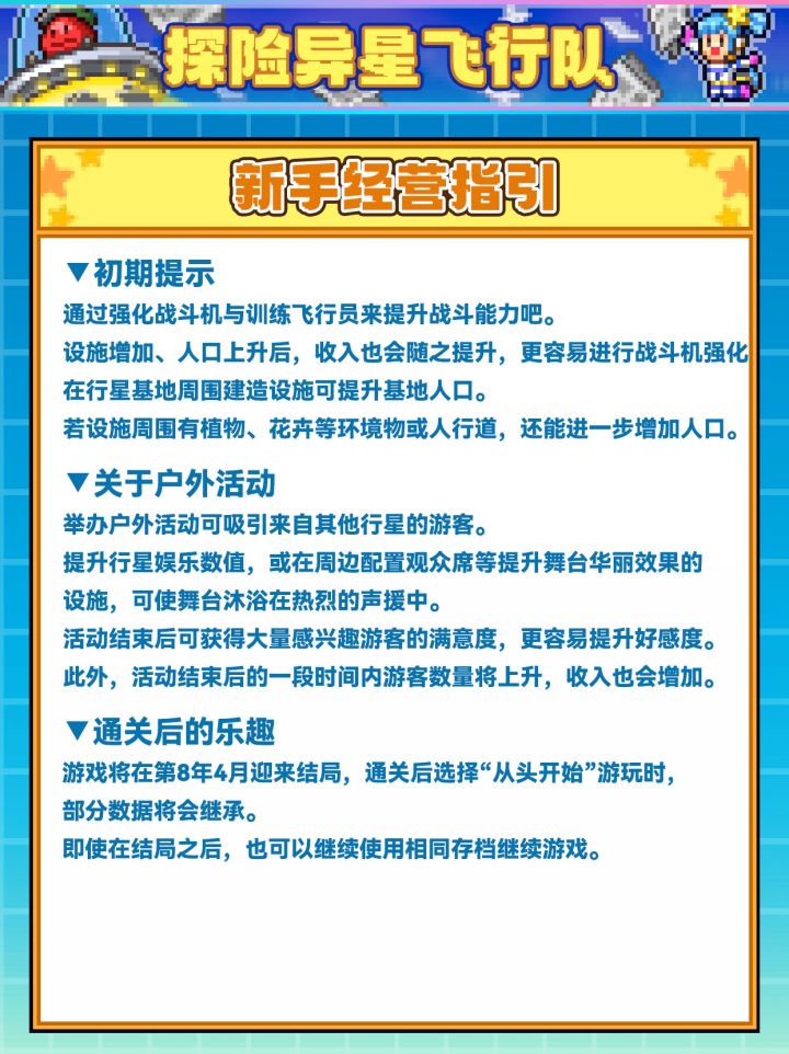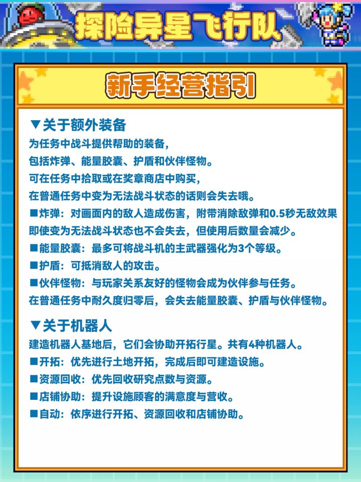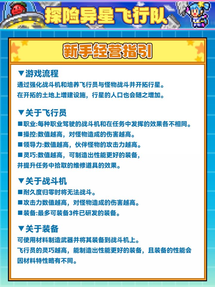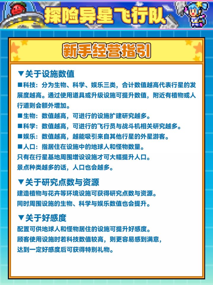 小伙伴们早上好,新游《探险异星飞行队》已经上线啦~这是一款集合了轻量化战斗的经营模拟游戏,如果小伙伴对玩法和机制有疑问的话,可以先看看它的经营指引哦~这里也帮小伙伴全部总结成图片了,感兴趣这款游戏的小伙伴不要错过哦!#开罗游戏世界 #今天游戏圈发生了啥 #发现好游戏 #开罗游戏 #探险异星飞行队 #模拟经营 #模拟经营游戏 #游戏安利 #游戏推荐 #游戏日常