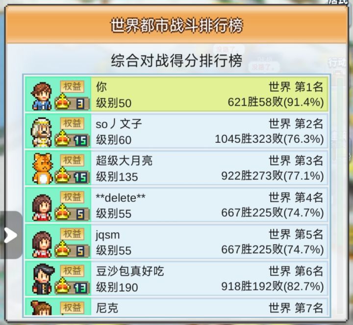 开服一个月才从拉面转到箱庭,又一个月都市战登顶。压级打法还是太超模了~其实很多败局都可以避免,如果从头再来,应该能有95%胜率吧。不过没什么关系,现在已经很满足了。下一个目标是100级拿金奖杯,然后开始追都市满级和全角色属性全满