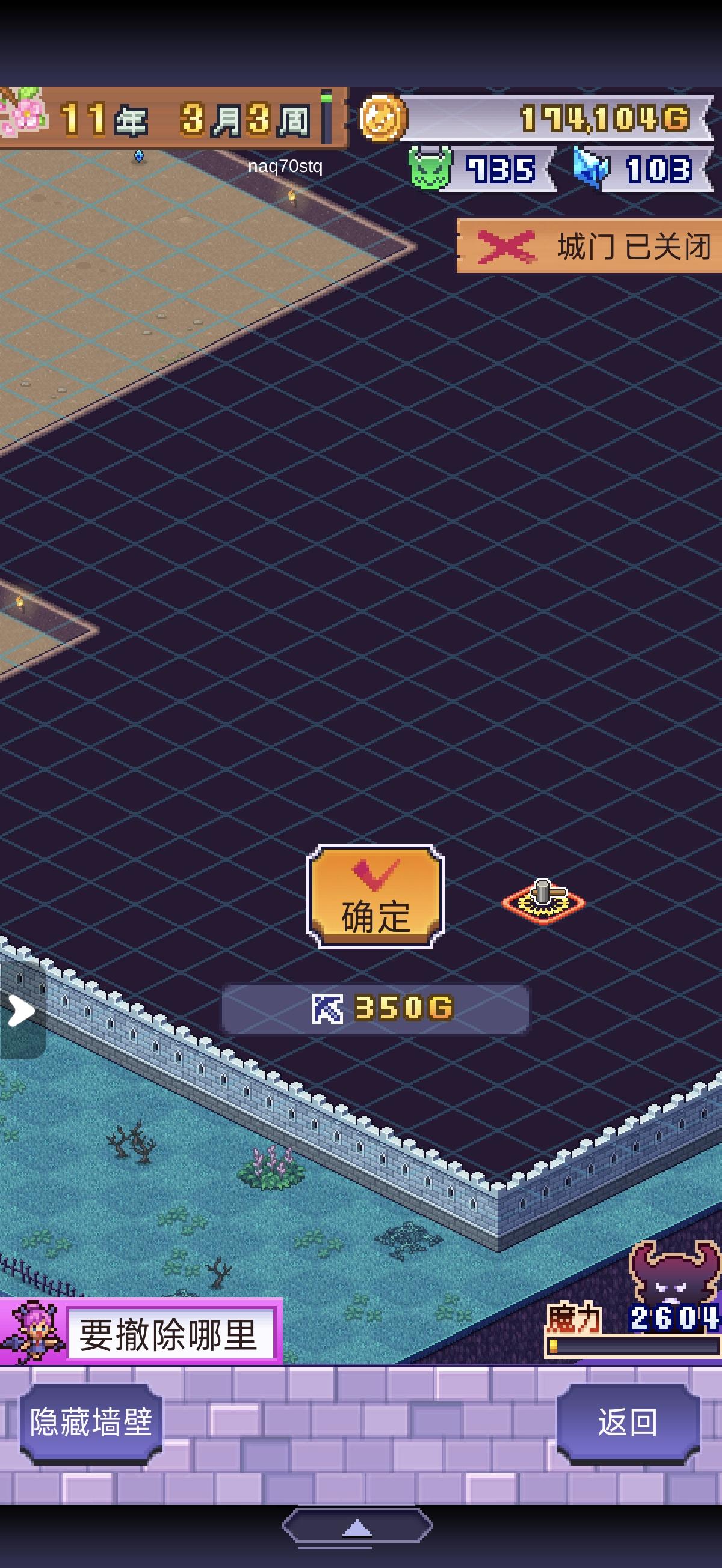 只讲第一档怎么过,通关一次后有继承会容易很多。1,房间人口和最小格子数:7格3人,11格4人,17格5人,25格6人,35格7人。三个一样的怪物在同一个房间涨全属性10%,房间超员扣全属性50%。2,怪物房间可以不通道路,方便冒对话框讨要礼物。经常送礼能提高勤奋度,勤奋度1:1加成魔力,是主要魔力来源,也是16年结算参考值之一。3,更新后,其他房间的宝箱会被打开,魔王房间的宝箱在魔王嗝屁前都