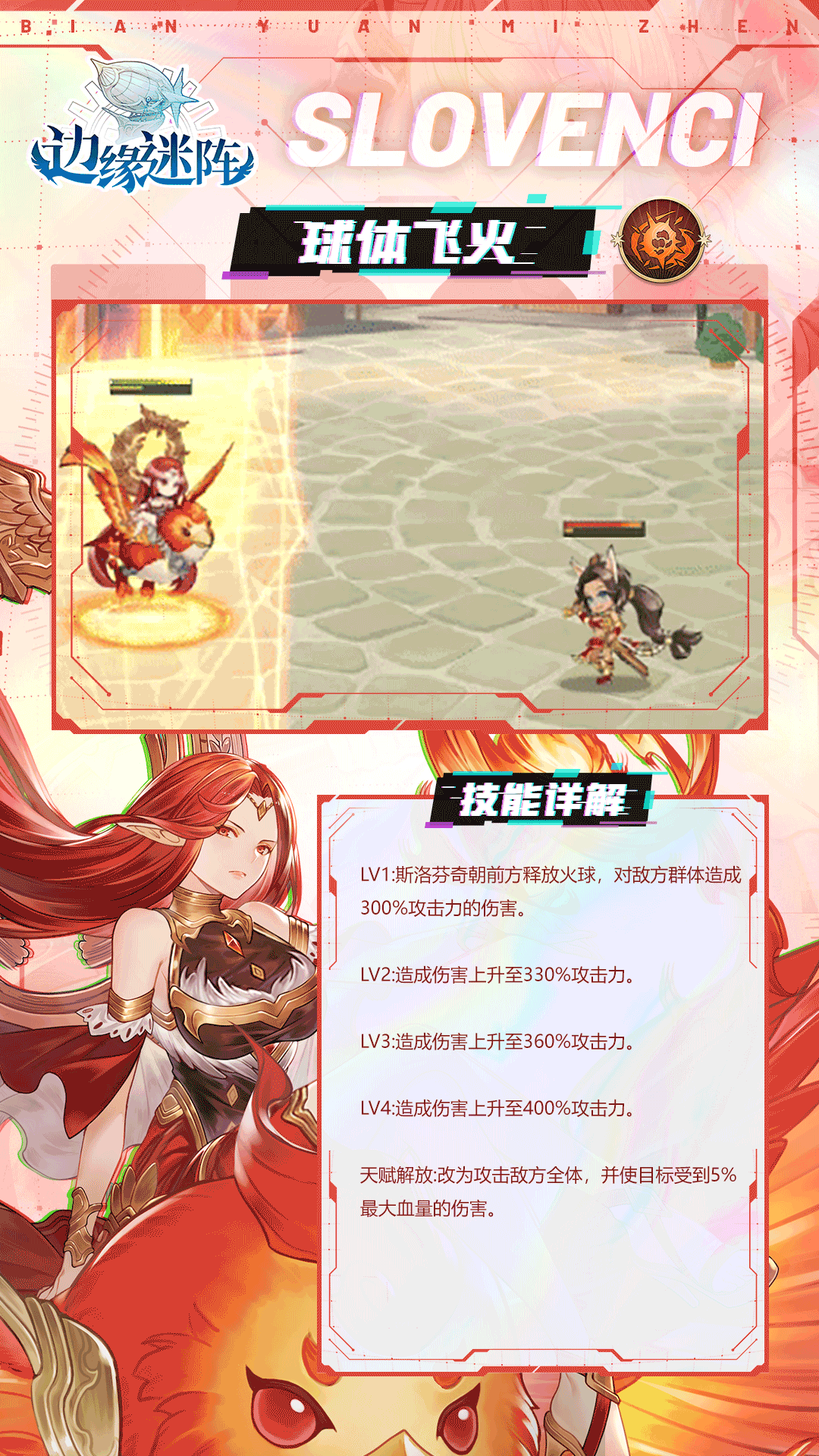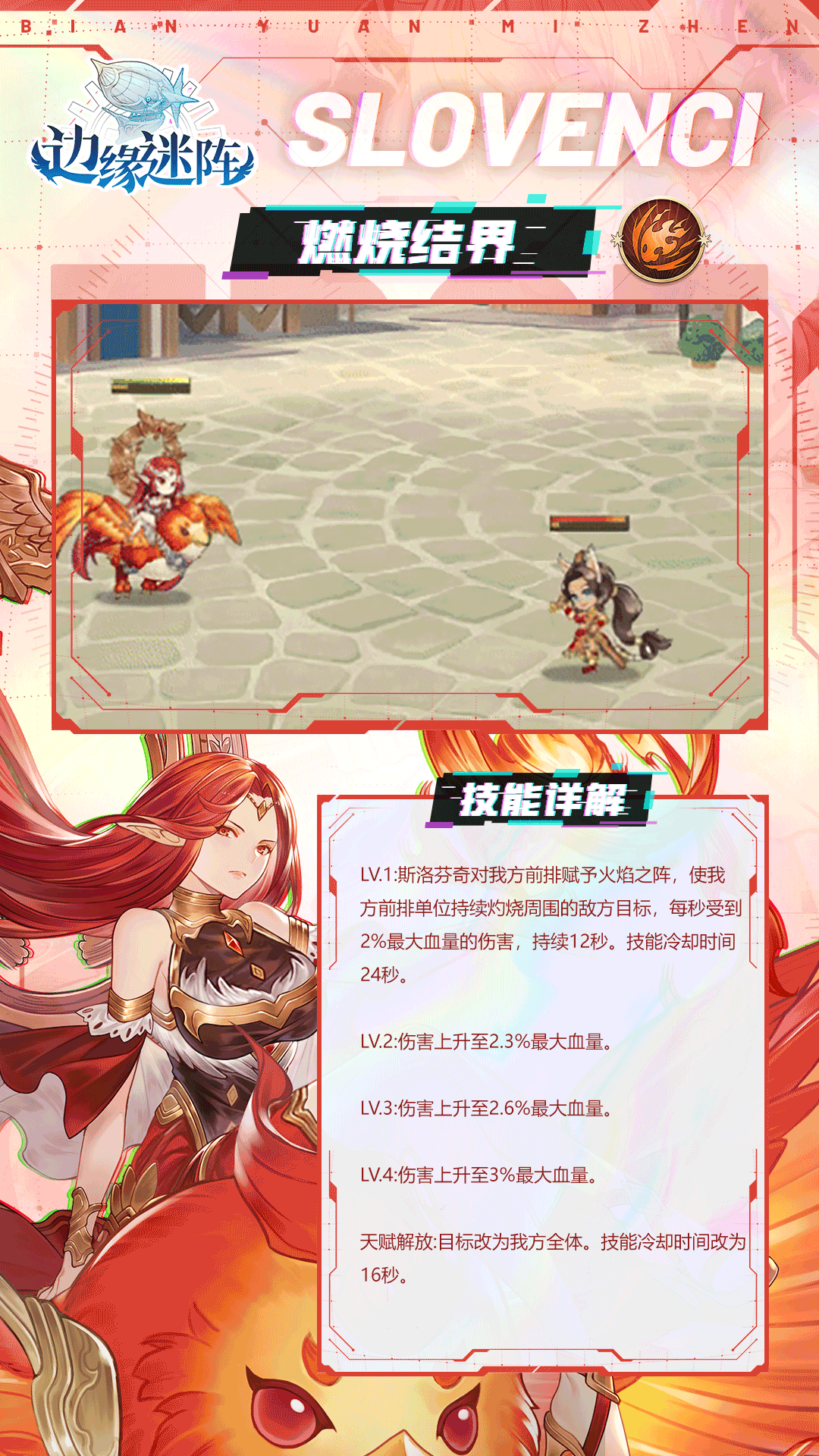 冒险家们好,SR级英雄「斯洛芬奇」是神秘的火焰凤凰。能建立结界强化友军,并且使用火炎的力量来燃烧敌人。让我们一起来认识一下她吧~✦斯洛芬奇的故事✦最初型态的斯洛芬奇,其实只是一只凤凰。但是看着人族与古裔的男男女女久了之后,她开始向往拥有那样子的外貌。于是便要求尤蒂娜赐予她一个古裔的形体。于是,尤蒂娜便又分割了一部分的自己,创造出另一个斯洛芬奇、一个貌美如花的斯洛芬奇。凭借着这副倾国倾城的美