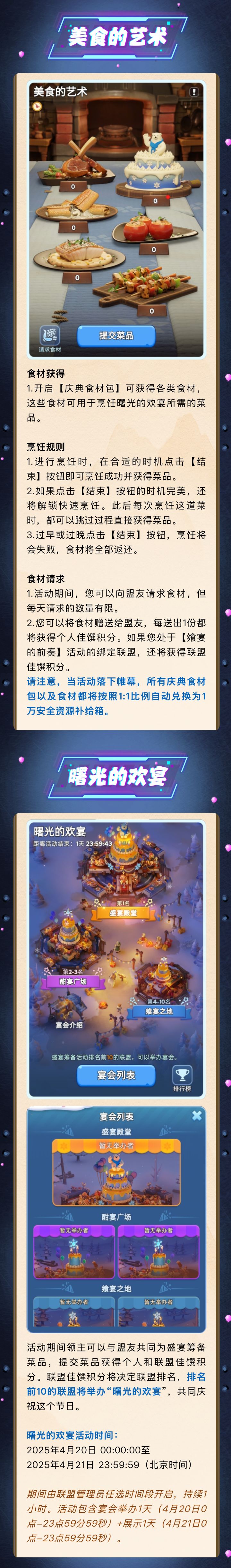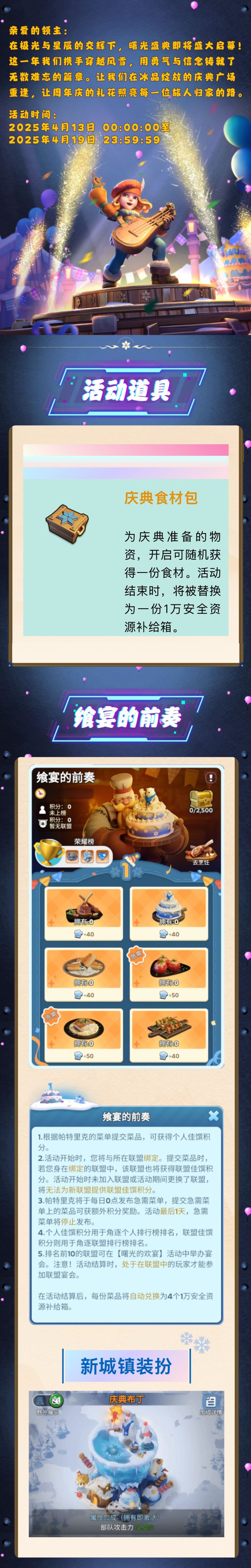 活动预告 | 《无尽冬日》一周年庆典,等你回家。亲爱的领主:在极光与星辰的交辉下,曙光盛典即将盛大启幕!这一年我们携手穿越风雪,用勇气与信念铸就了无数难忘的篇章。让我们在冰晶绽放的庆典广场重逢,让周年庆的礼花照亮每一位旅人归家的路。活动时间:2025年4月13日00:00:00至2025年4月19日28:59:59最后茉莉给看完的领主们送个小兑换码周年庆活动开启当天还有节日兑换码哦~兑