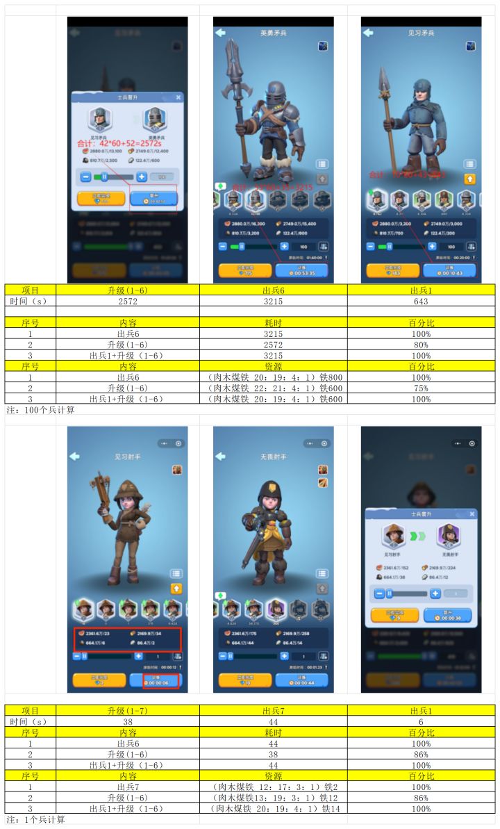 先说结论:1.培养7级兵时间=培养1级兵时间+升级7级兵时间;2.培养7级兵资源消耗=培养1级兵资源消耗+升级7级兵资源消耗;3.升7级兵缩短的时间比升6级兵缩短的时间短,资源消耗同理。所以,我们总结为一句话:可以放心的先造1级兵,再升7级兵,不会节约时间,也不会浪费资源。在什么情况下需要先造1级兵,再升兵呢?答案是:挖矿高级兵挖矿对比低级兵是有优势的,但不多。如果是游戏早期,刚刚开