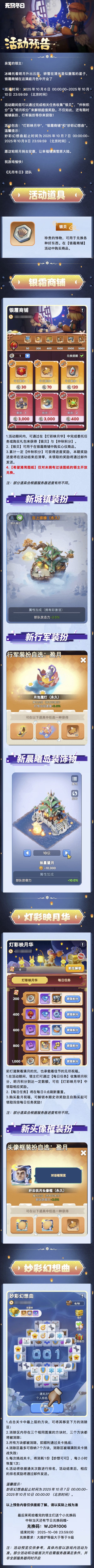 亲爱的领主:冰峰托着明月升出云层,碎雪在清光里似撒落的星子,银霜商铺在这满庭月色中开业了活动时间:2025年10月6日 00:00:00-2025年10月10日 23:59:59 (北京时间)活动期间您可以通过完成相关任务收集“银贝”,“仲秋积分”及“明月积分”来解锁超值奖励。不仅如此,还有限时城镇装扮、行军装扮等你来获取!活动包含:"灯彩映月华","银霜商铺"和"妙彩幻想曲"。温馨提示: