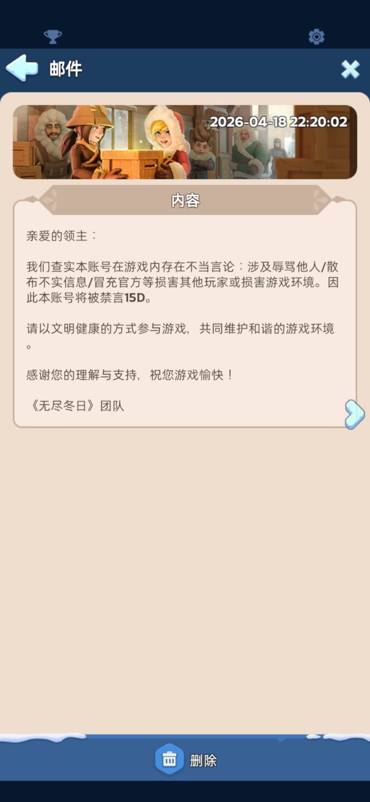 无心法师不知不觉,《无尽冬日》已经陪伴了我们两个春秋。 风风雪雪两周年,我们在这片广袤的冰原上共同探索、一起发展,结交了更多的朋友。 愿我们在接下来的时光里,继续在《无尽冬日》的土地里,团结互助,共同成长! 游戏ID:915242785王国:3985