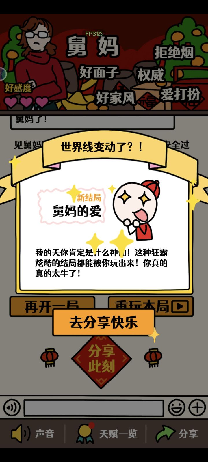 亲戚单场完美结局,大概率是需要你看至少一个广告的,算下来有十几个亲戚单场,其实广告看多了就有点烦躁了。