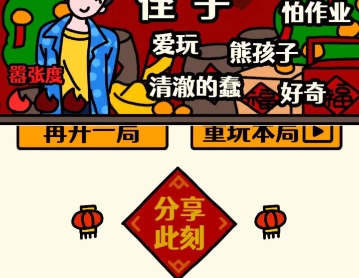 第二话来辣❗️本次成功解锁两个新属性(这期孩子要素过多)游戏就体验到这里。真的是非常有过年气氛的游戏👍感兴趣的⬇️⬇️自行下载⬇️⬇️#我的游戏日记Vol.6#搞笑#沙雕#休闲游戏#策略手游#新游安利