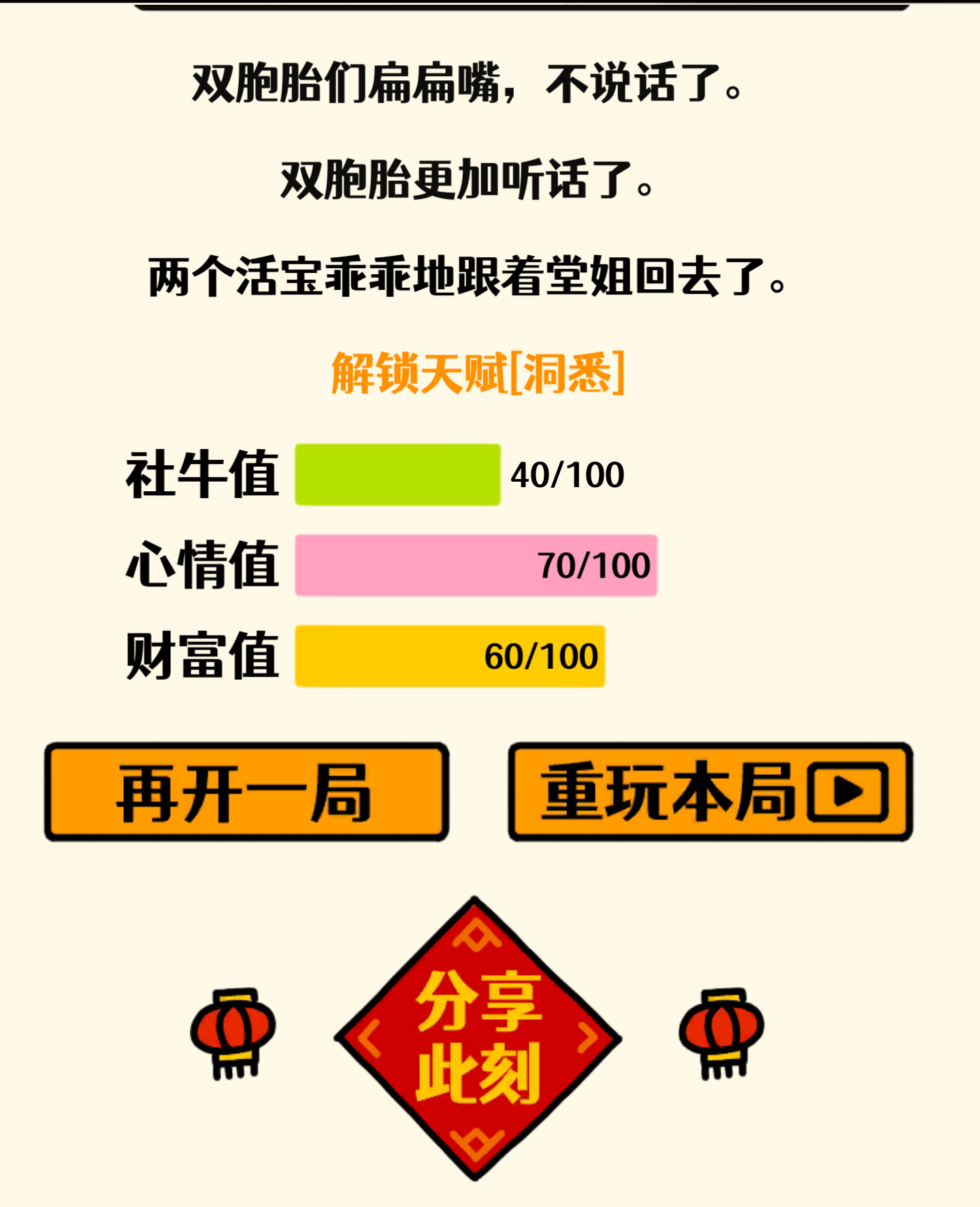 分享!游戏娱乐性极强,快过年了,小伙伴们可以先玩这个游戏提前模拟一下。