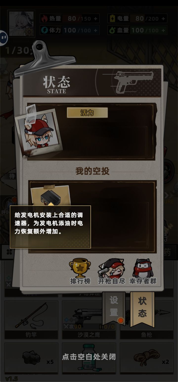 为了养5级狗子刷出来的最强档!!!空投是最轻松的配置,开局有消音器+50伤害,胶囊和雷达是迷雾后最舒服的组合。其他就不用说了,这配置会玩的只要还有肾上腺至少50天前不会死,之后几天看整体运气有没有之前剩的物资或尸潮断不断了。胶囊永远的神。雷达、冰箱、调速器只能让你苟活于世,胶囊是唯一能让你开开心心打游戏的空投
