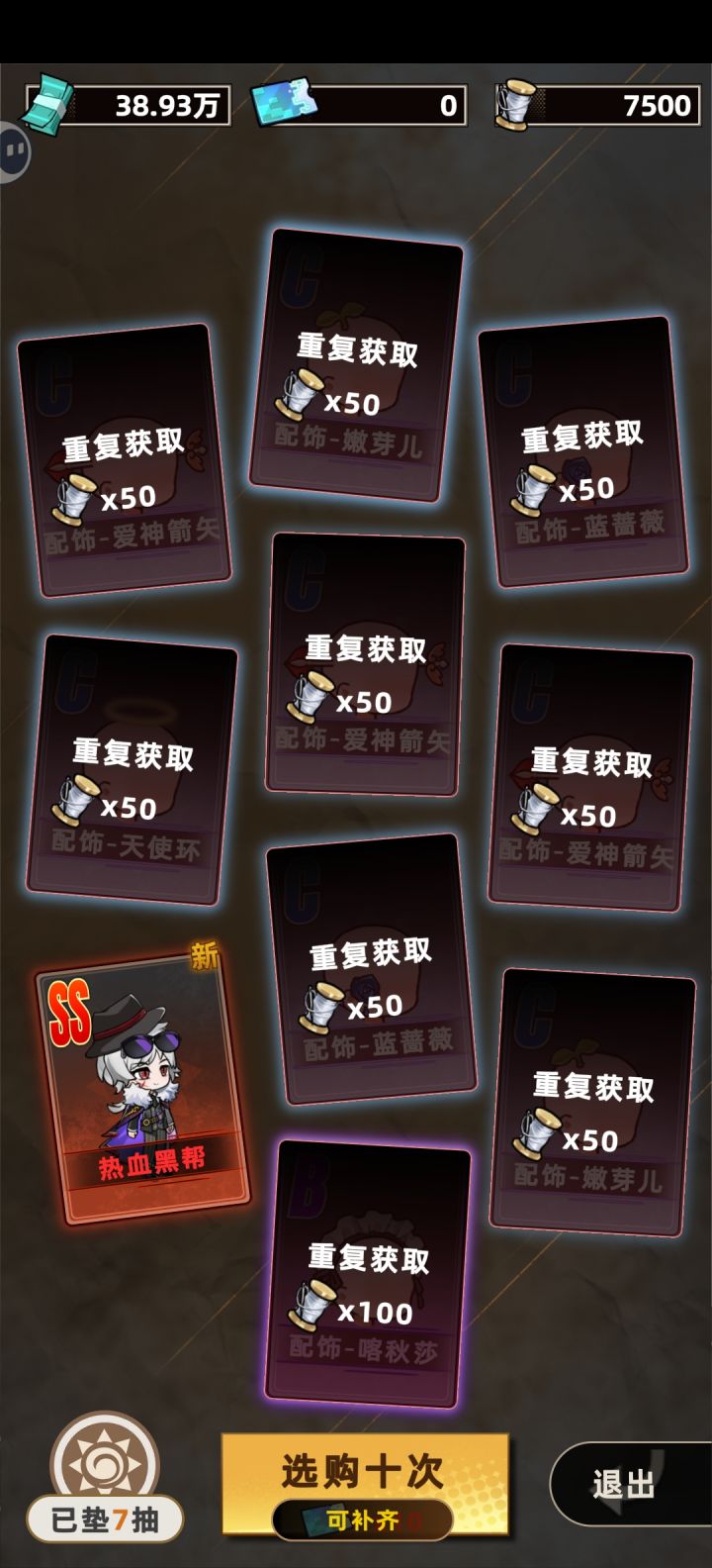 一看到更新皮肤不会还有人傻傻的一个一个翻开卡牌抽卡吧?(没错就是我)主页有个跳过抽卡的小字可以勾上 并且点两下空白就可以跳过了并且ss皮肤是没有保底的 抽卡慎重!我五十万币就抽到一个ss皮肤,商店也还没开启不能兑换#我在末日打造安全屋