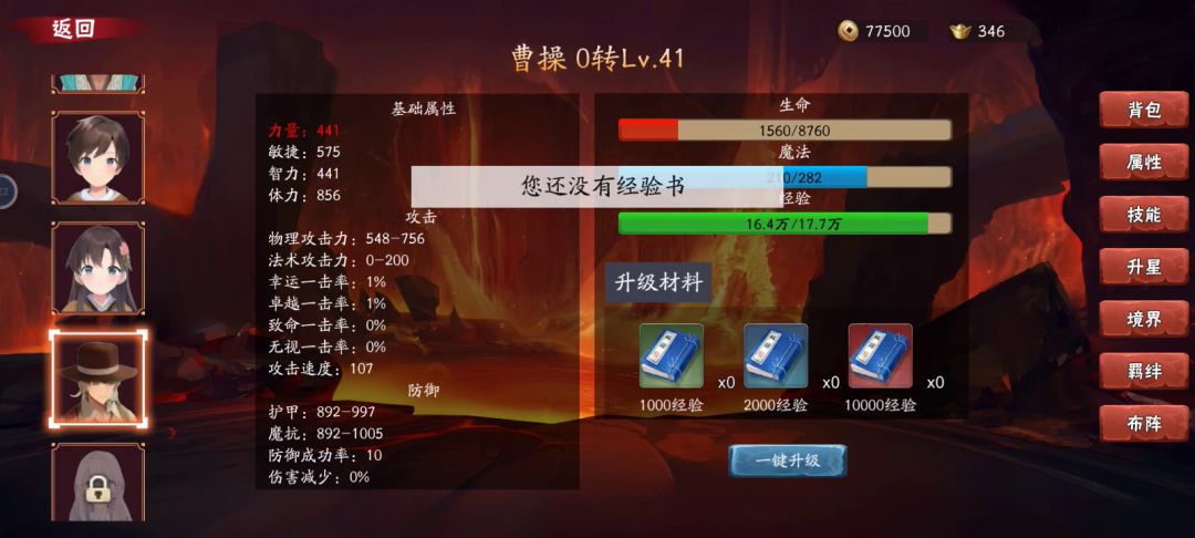 把公告里的兑换码都兑换了,然后去找卖药瓶的商人,然后把里面三种经验书都买了,其他不买,然后刷新,继续买经验书,一直买到只剩5万铜钱就停。 然后点击右边人物,再点击右边属性,找到一键升级,直接点击一键升级,然后重点来了!经验书虽然消耗完了,但点击右边背包,再点击材料,经验书图标还在,但却没有价值了,卖了也等于0,但是!把经验书前面的物品,卖掉一个,空出一格位置后,再点击右下角整理,这时候经验书会自动