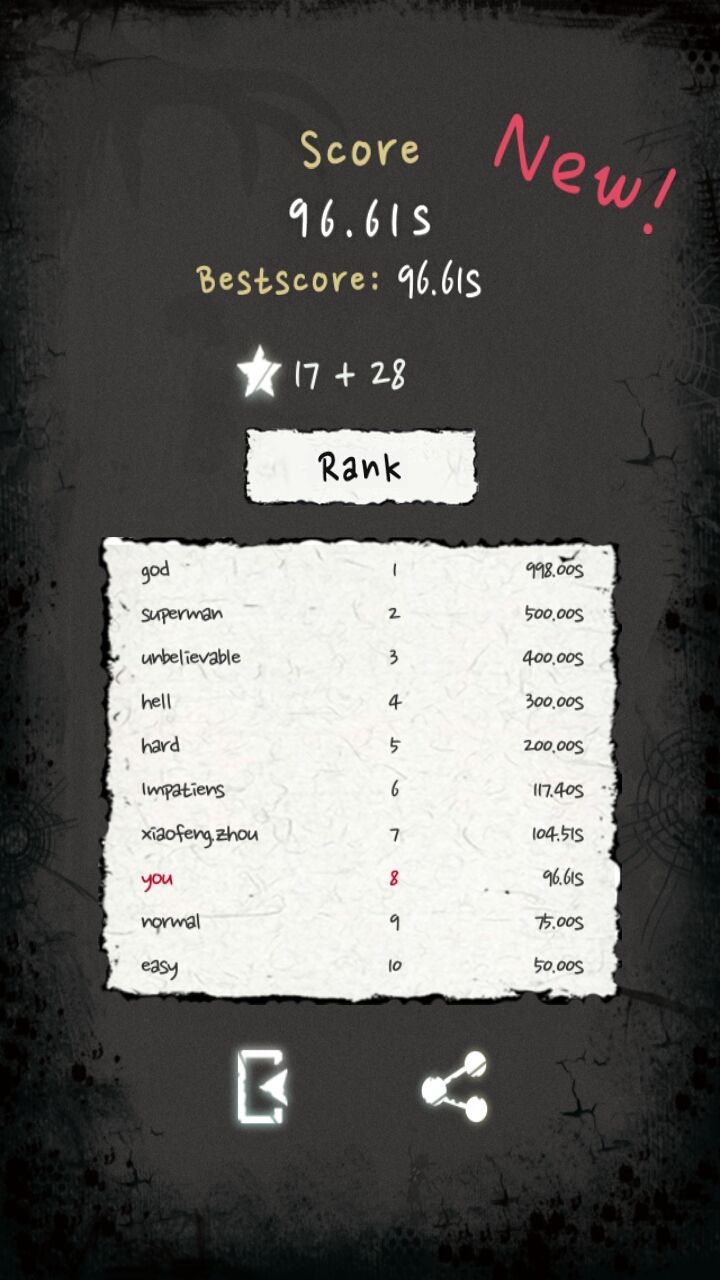 其实解锁复活后坚持的时间也变长了 一是反应快 二是板子都背下来了 大概150到200? 没有全屏大概是这个时间