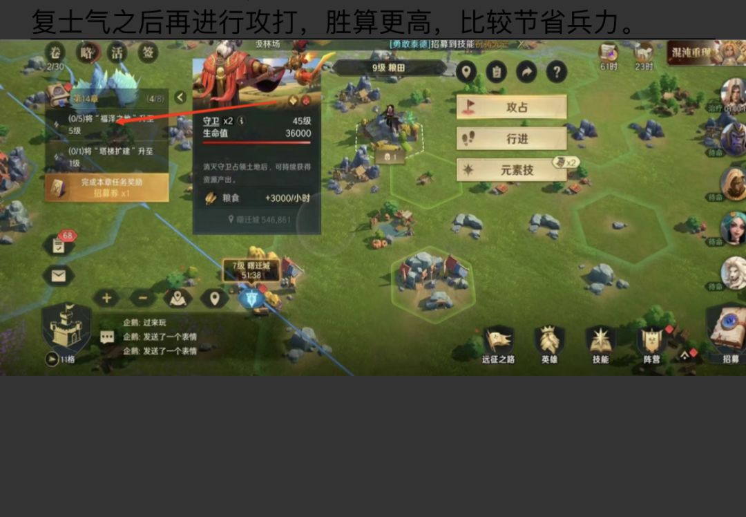 城主大大们经过几日的摸索,一路跟着主线开荒发育,想必已经掌握了游戏技巧。为了让更多新手能够快速掌握游戏进度,特邀内测大神给城主大大们详细介绍目前发育攻略,以及攻占8、9级地的实战教学,赶紧排排坐好,要开课了哟~ 01首开8、9级地 8、9级地对新手来说难度不小,城主大大可以先尝试不断攻打7级地,刷英雄雕像获得升级经验,把队伍升级到推荐兵力,再尝试攻占8、9级地。一般来说30级可以攻占8级地,35级