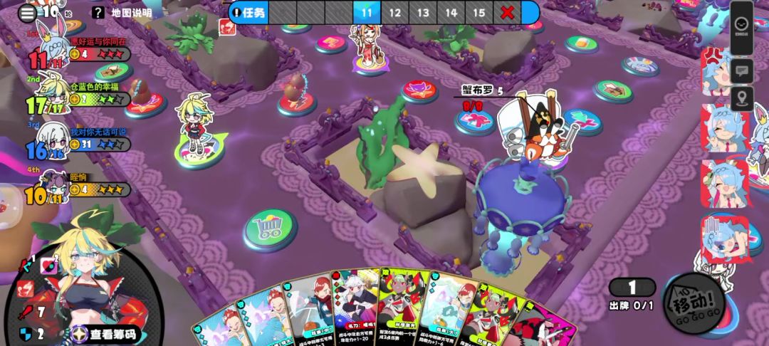 这很明显是你不会玩了,这个任务只能七轮前做有高概率拿金筹码,每回合要拿高升炮炸下啊呜压力就小很多。若梅没养队友才是她的问题