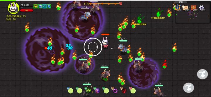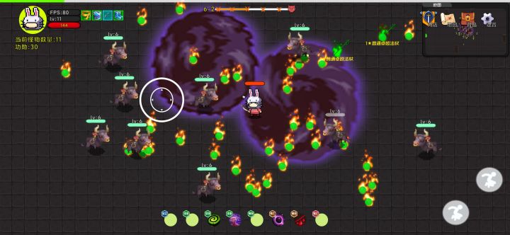 1.天赋技能 : 提升玩家属性 从而加强主动技能的施法[属性成长]2.主动技能 : 由玩家自由搭配 [自由搭配法杖编辑器]-------[作者测试内容:]目前我自己试玩 一次割到50关 我觉得没难度我自己测试发现bug: 打开背包时候 拖动技能会被阻挡,不能拖动技能, 后面会更新-------[如果你刚刚开始玩:]游戏一开始还是大家尝试一下 各种技能的触发 条件!!!!和效果!! 再自