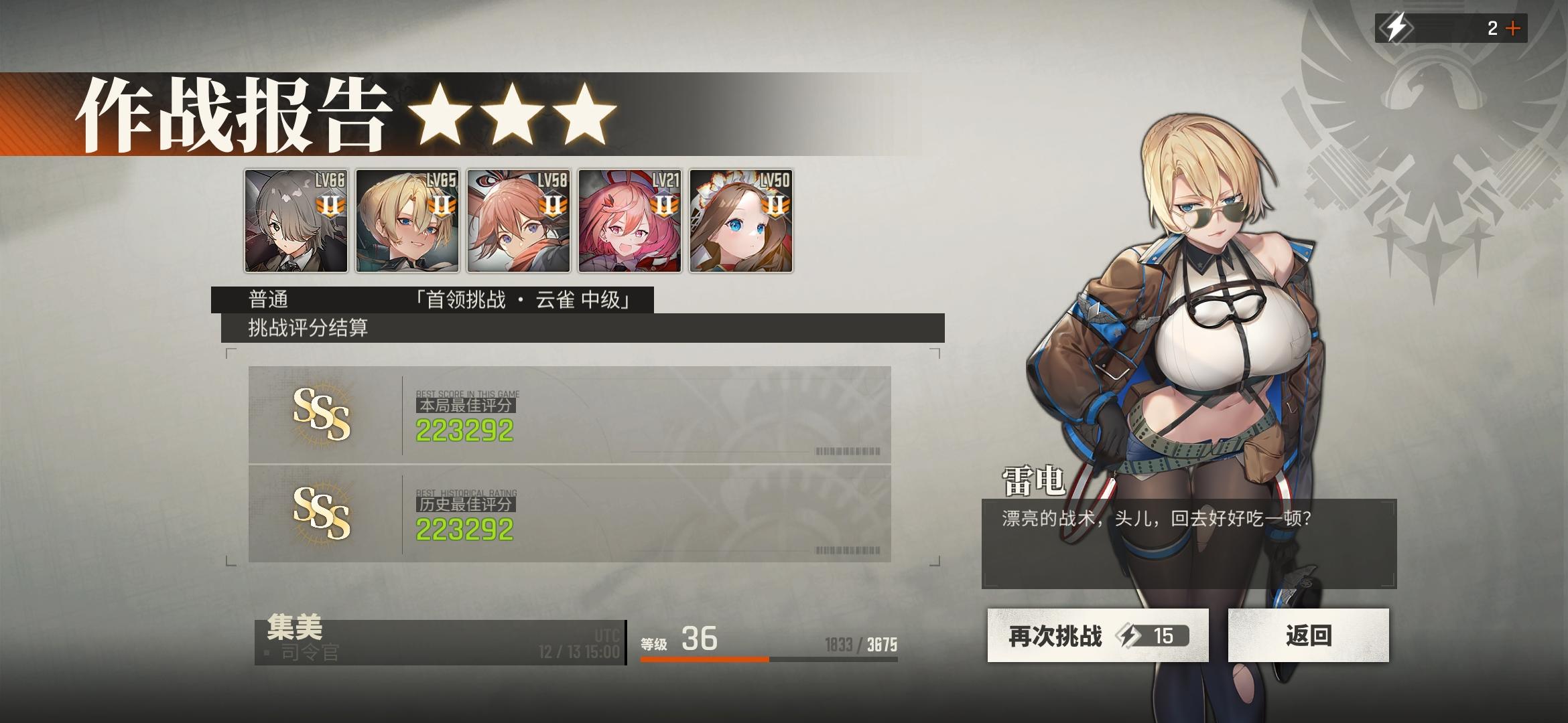 地狱猫打了5个决战技 仅有一回合没在打技能[表情_吐舌头] 精3萤火虫应该能上100w 录完全程长达10min就不放了 没什么要点 就地狱猫在屁股打完后主动去接右边的小车 让需要充能的吃反击掉血勾引小怪打 应该算初级特化打法