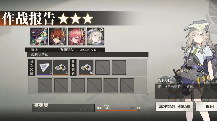 考虑到boss二形态技能更针对地面,没上需要架设的防空炮。此时88炮的优点就显现出来了,环境抗性、走位灵活、生存能力强。通关队伍整体练度不高有继续优化的空间,打高级的话乘上系数分数也够拿奖励了。