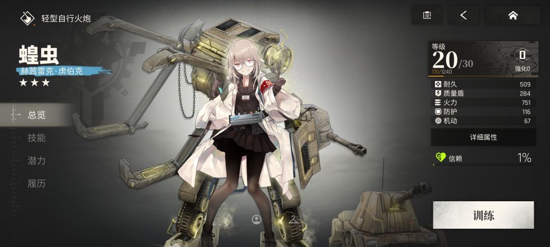 第一回合移动3格招一个小炮架,再移动3格开架设。(反正大家都是腿短手短,第一回合基本上都打不到怪。小炮架能吸引两发火力,开局送的五星坦克站她身后开援护放辅助,靠蝗虫5格反击都能打死一群。) 第二回合攻击范围5格,技能范围6格。指哪儿打哪儿,对面都没法反击的。 攻击特别高,射程特别远,什么角落都能打到,比金卡都好用。