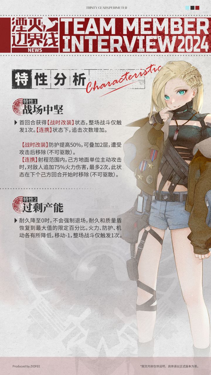 我们全体队员将追随您的身影,一起守护基地。 ===================================== ▲公测信息▲ 登录平台:安卓、iOS 公测开启时间:2024年11月29日 ▲前往预约▲ http://www.trinitygears.cn/ 欢迎加入到我们的QQ官方号中,第一时间收到游戏情报,与玩家交流作战心得。 ▲官网Q群▲ 湮灭边界线官方01号群:145581362 湮