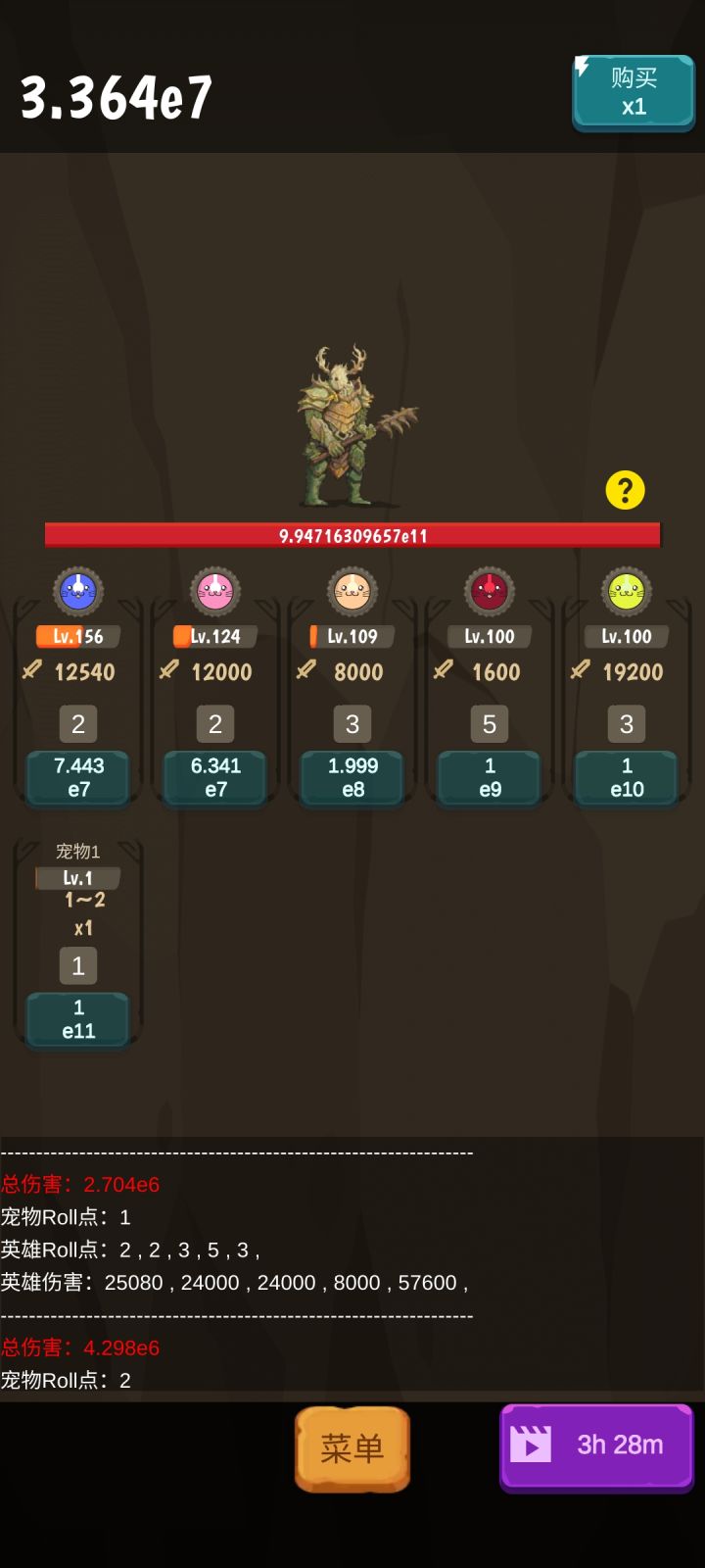 先说总结:这是个扔骰子套皮的类树型放置游戏,目前共4层级,我在第3个1.进游戏第一步要做的是用“xxx”兑换码拿100红石头,然后按部就班开始玩。2.第一个要注意的点是每单个英雄100级给一点点钻石,首先用红石头刷新,弄满神器1,就能得到16倍钻石收益,如果先点了别的再点神器1,不会后补钻石3.神器1满了之后随意,没有固定套路,给个小建议,4个神器9给1000倍伤害,还是很可观的,还有就是可