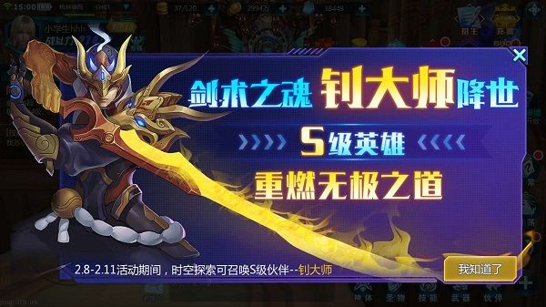 亲爱的学员:欢乐的时间总是那么快,春节假期不经意间已经结束,大家又回归到正常的生活工作当中去,学院也在此献上一份祝福:祝愿大家开工大吉、学业进步、顺顺利利、万事如意!>>> 开启庆典,登录送礼!活动时间:2月23号—3月2号活动内容:活动期间每天登录游戏即可领取大量金币钻石、经验药水、强化石、超核能量、上帝粒子、神秘陨石、弑神精华、弑神合金等开学补给!>>> 银河之力亮相登场活动时间: