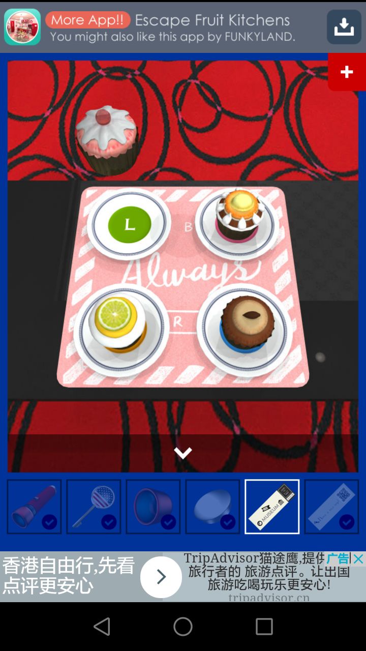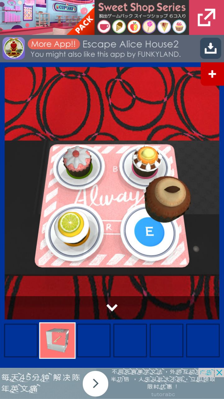 呃,以下是本人玩了一个下午琢磨出来的难点,希望能对大家有帮助甜点桌下的暗号你会发现每个糕点后都有一个带着颜色的字母(原谅绿的L不想吐槽)电视机旁会有一扇门,门上的五个字母就可以按甜点下的提示去按门就开了