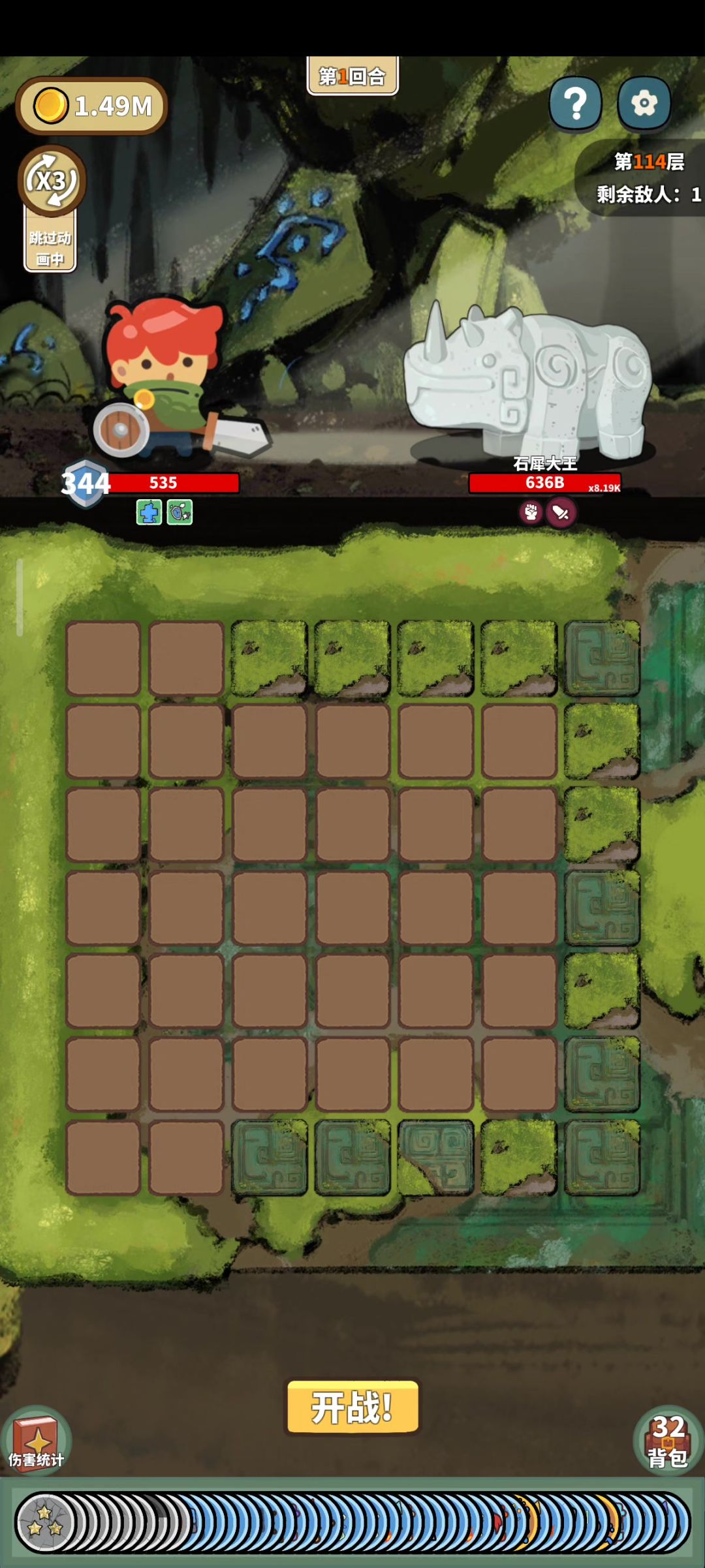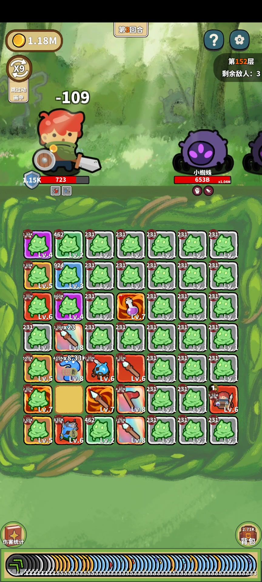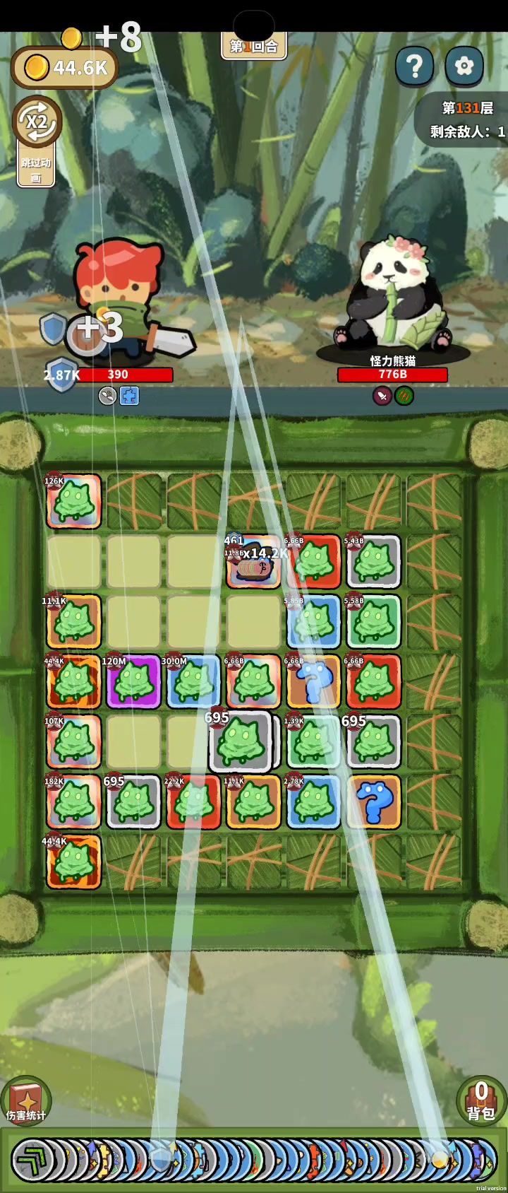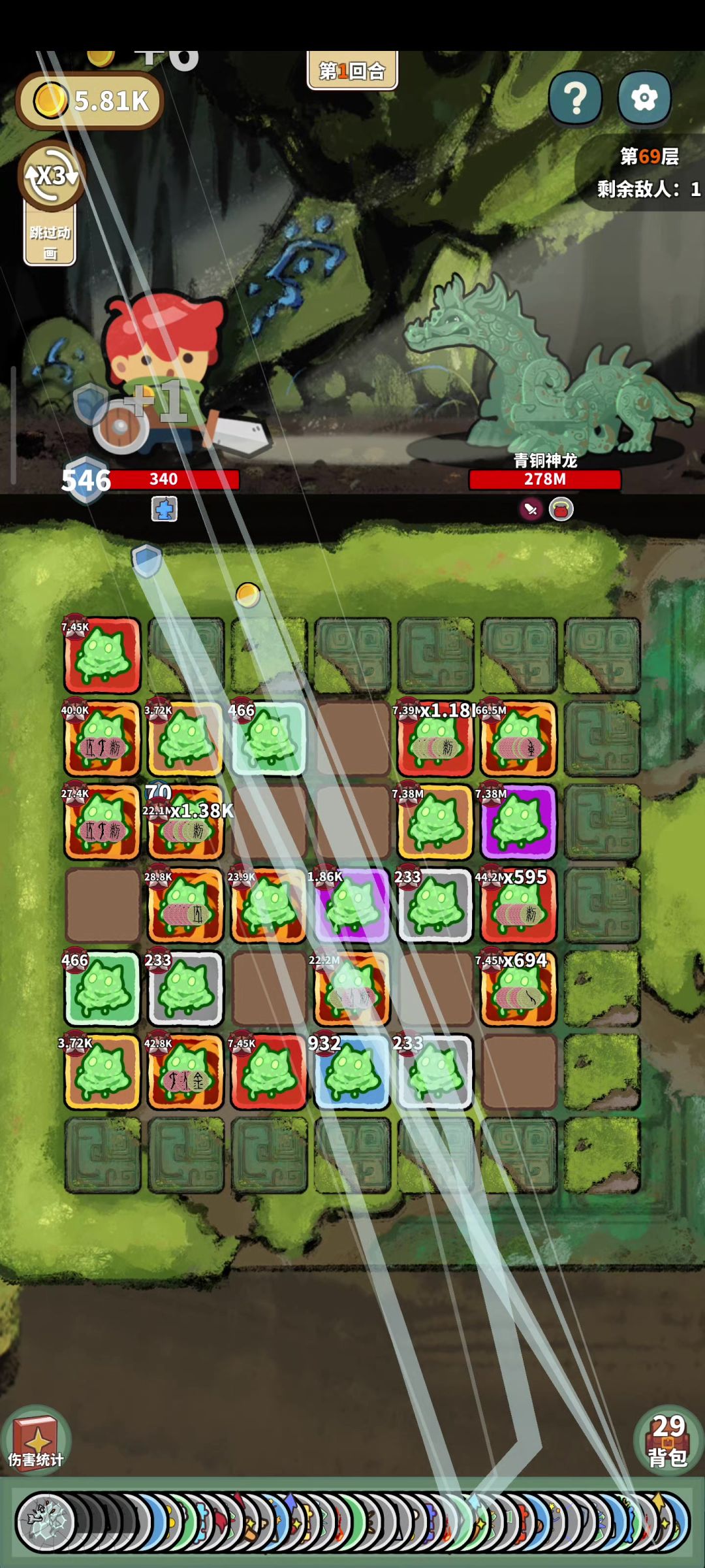 开局就能刷出来,也不需要动什么脑子,核心就是萝卜拔地,然后就是金币的那几个,合成后加属性的那几个,然后一般7个傀儡,加4个卫士,然后剩下的就是附魔,就是加攻击次数和攻击力和倍率,剩下就是点点点