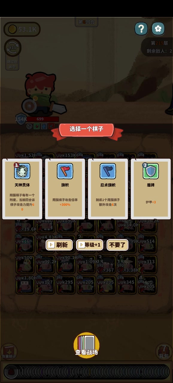 胖子是降低敌人的攻击? 总算是稍微玩明白了,第一次试了下无尽