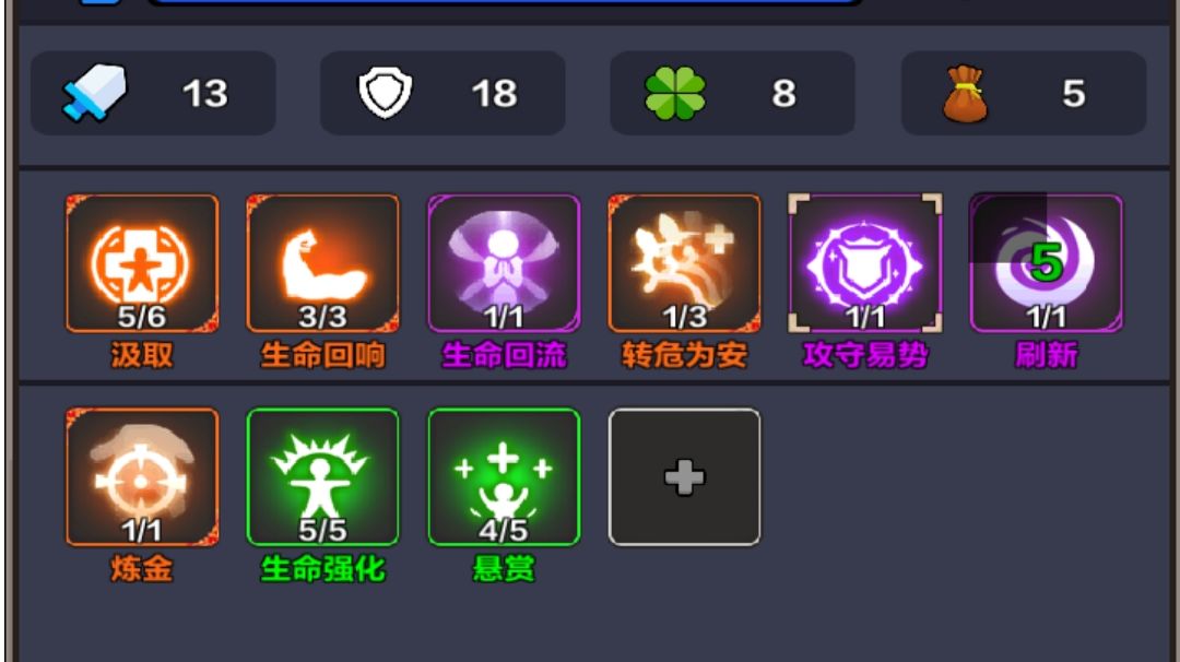 开局带的【汲取】【生命回响】【自毒术】,剩下一个绿品质技能可以选生命上限或者治疗类,一切以前期存活为主,不需要考虑叠层、金币、偷怪物技能等等等,只要遇上了突破药剂就可以数值膨胀。