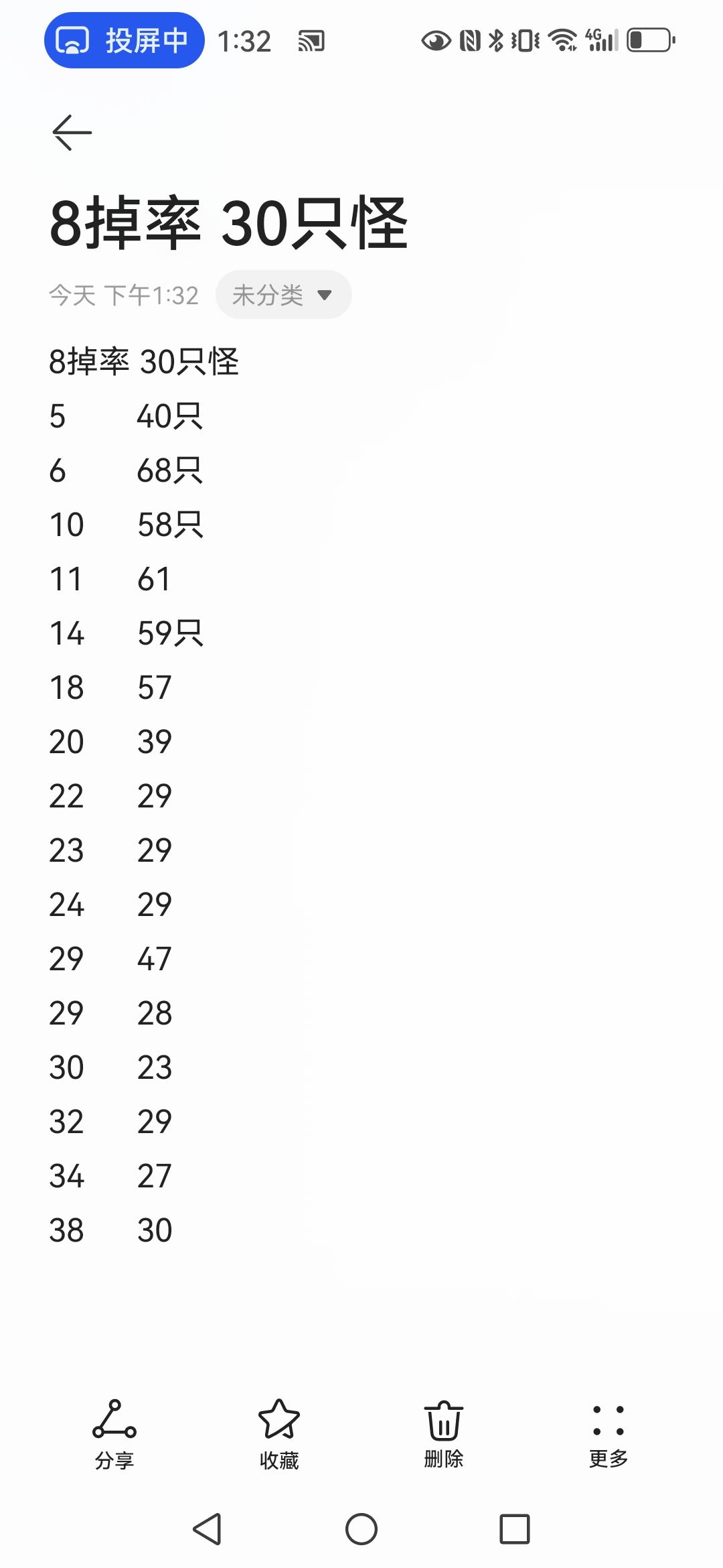 固定幸运等级,只选掉率属性。计算每次给技能等级道具前的刷怪数量。可以发现随着掉率上升,所需怪数量趋于29只。 而且发现,1.频繁刷新能更好的在20多只怪时刷出等级道具。(例如29掉率47怪因为基本没用刷新) 2.BOSS是坑,满进度即会提升怪物属性,可以直接刷新不打,有技能需求可打 为了频繁使用刷新技能,后面把淘汰和涂毒技能都去掉了,也不提升攻击(会增加噬血伤害)
