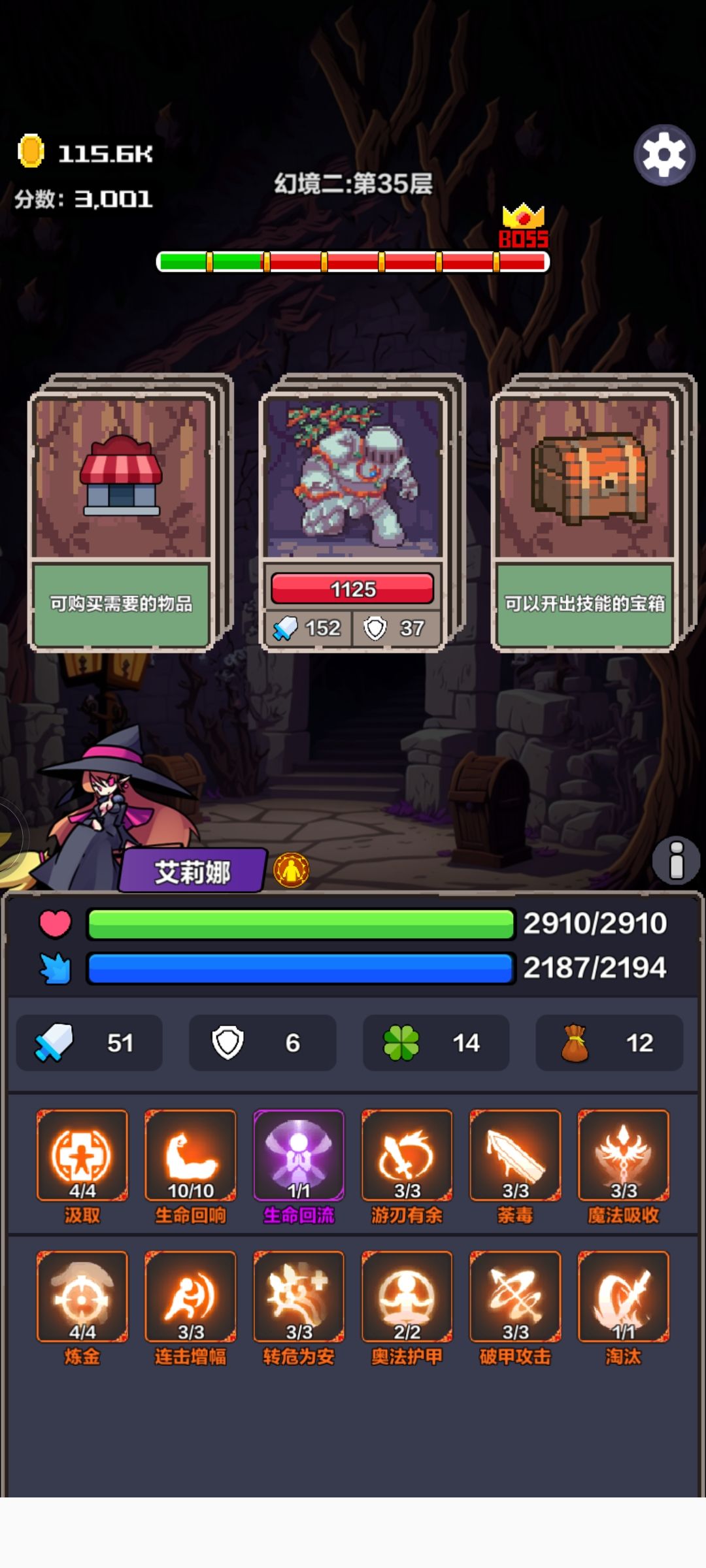 玩了几天大致上的一个通关体验。参考了下论坛其他大佬的思路,出门汲取回响续航,刷新找属性和上限突破,以及前中期技能没成型时刷掉boss。 前期属性主防御,等小兵打不死你了再主输出。 前期一定要搞到回蓝,转危为安或者攻击回蓝都行,血条不太顶得住的时候拿绿色的两个治疗术过渡也是ok的。 汲取如果要硬刚boss的话需要点很高,头没那么铁知道减他攻击力的话4级就够了。 当你汲取等级起来,回血回蓝都跟上,对策