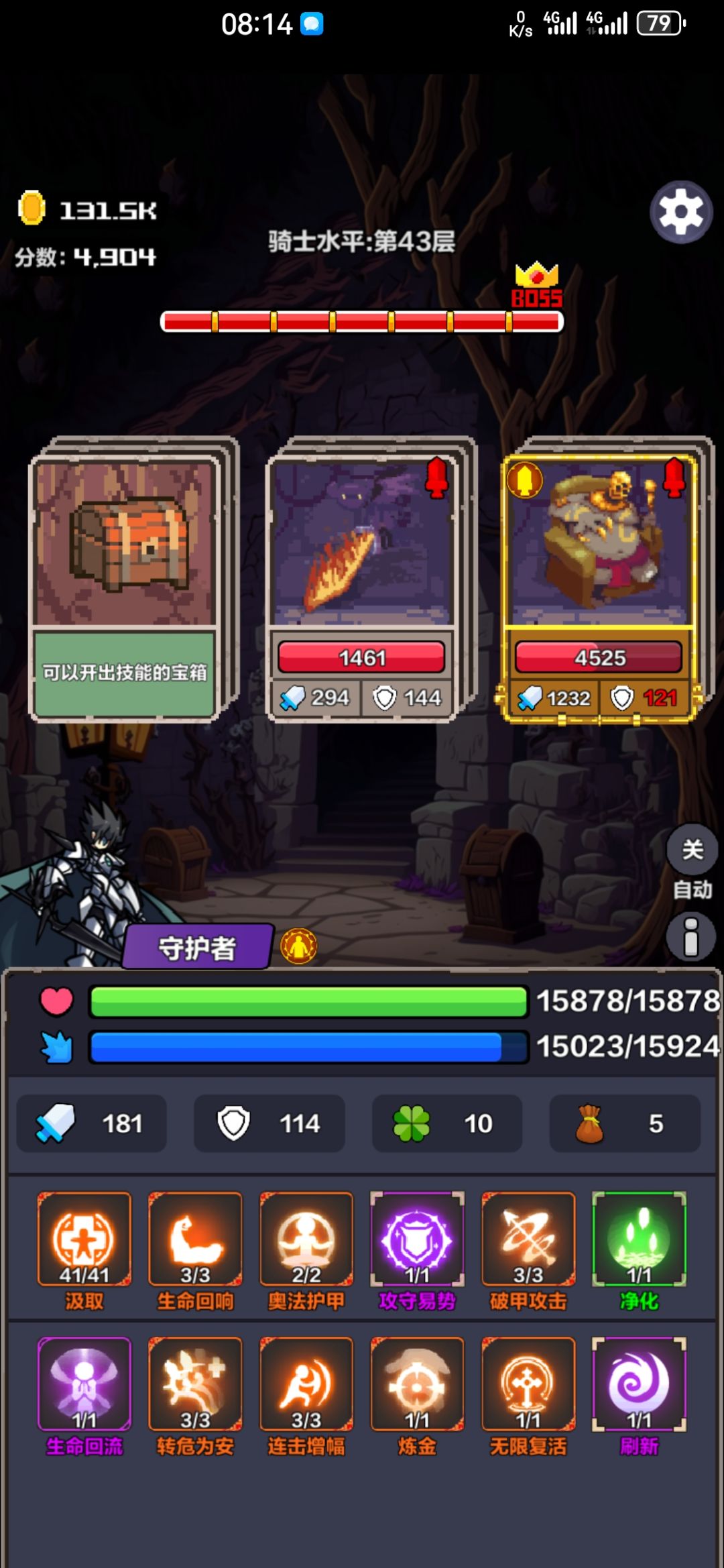 已经无敌了,开局带:汲取+转危为安+生命回流(8点) 刷技能:逆转+炼金 ,凑足这两个,就可以无限刷金币了,一次得1500金币,遇到商店买买买,几轮就可以把技能补齐,等级补满 然后血量蓝量无限成长,每回合自动回复