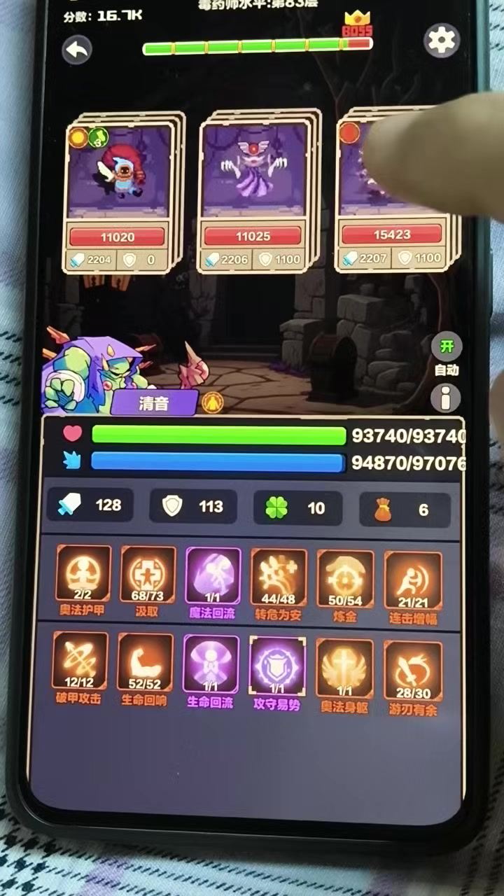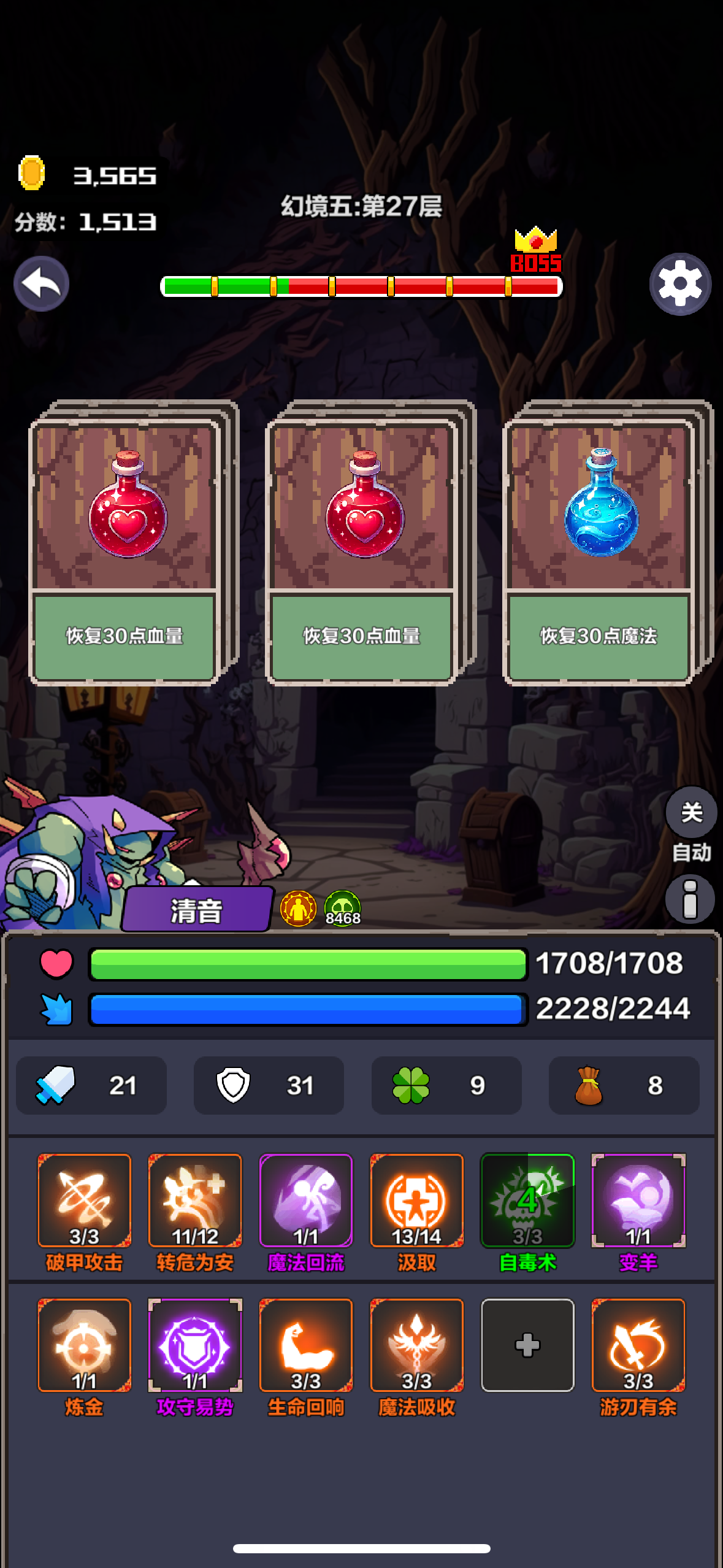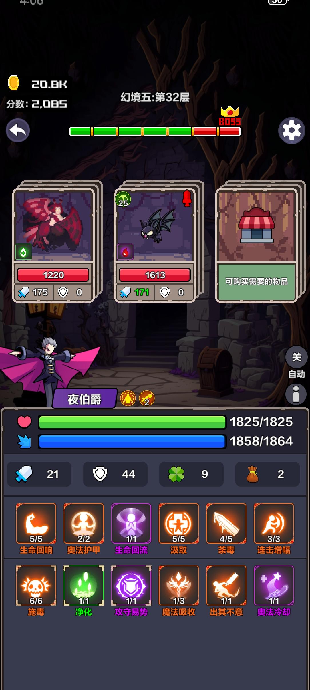 用毒师,自渎术+感染+炼金+汲取+生命回响+生命回流,先汲取和自渎有个十多二十层就够了,接着无脑把生命回响点上去这是百分比回血,初期需要个攻守易势,后面啥BOSS也挨不住毒,商店可以想咋刷就咋刷,只要自渎+汲取+感染+生命回响+生命回流,这五个不换,其他技能随便搭配都行,怪物成长永远跟不上,叠十万多的毒,怪物才不到一万的血量,金币没地方花,生命回响甚至能一下回一管血,有耐心能达到生命条200%以上