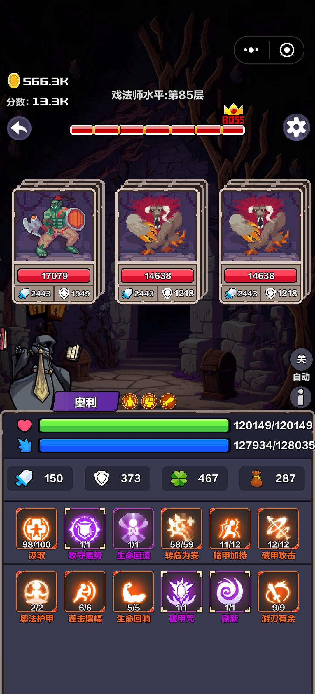 普通怪点一下秒杀,boss攻守易势再点三下就杀了,真的是无尽打下去了