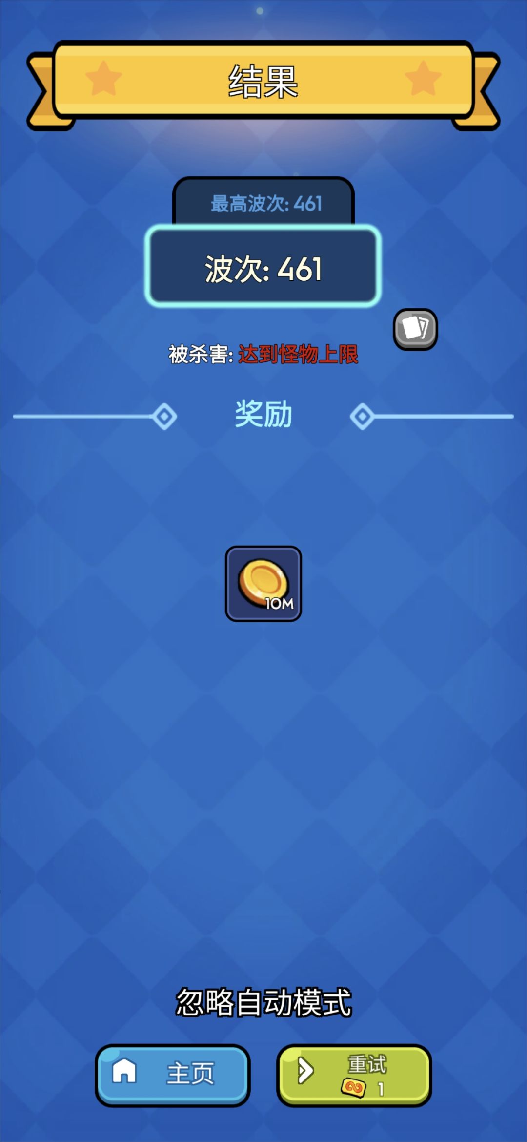 挂的我都快睡着了。打到后边开四倍速会特别的卡,卡着卡着就怪物超过上限了。可能不加速会好些,但是那就更慢了。 姑且发个自用的技能配置吧,局内全加攻击和收益两大类,防御基本不用点多少。(其实主要输出是加满的死亡浪潮)