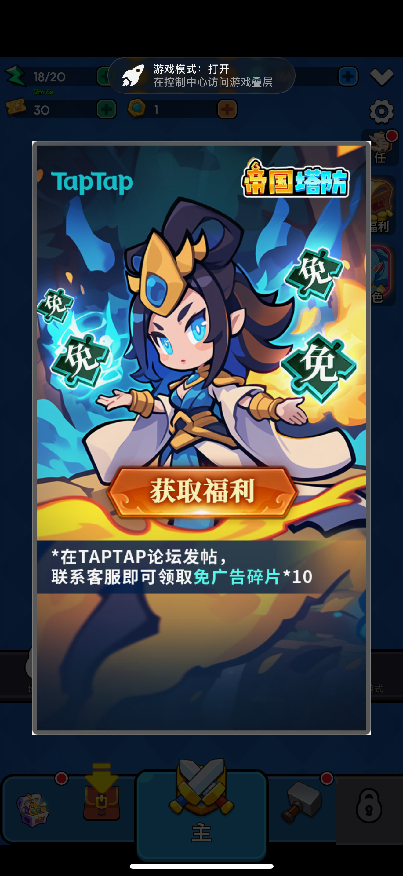 论坛发帖找客服就可以领取免广告碎片*10#发现好游戏