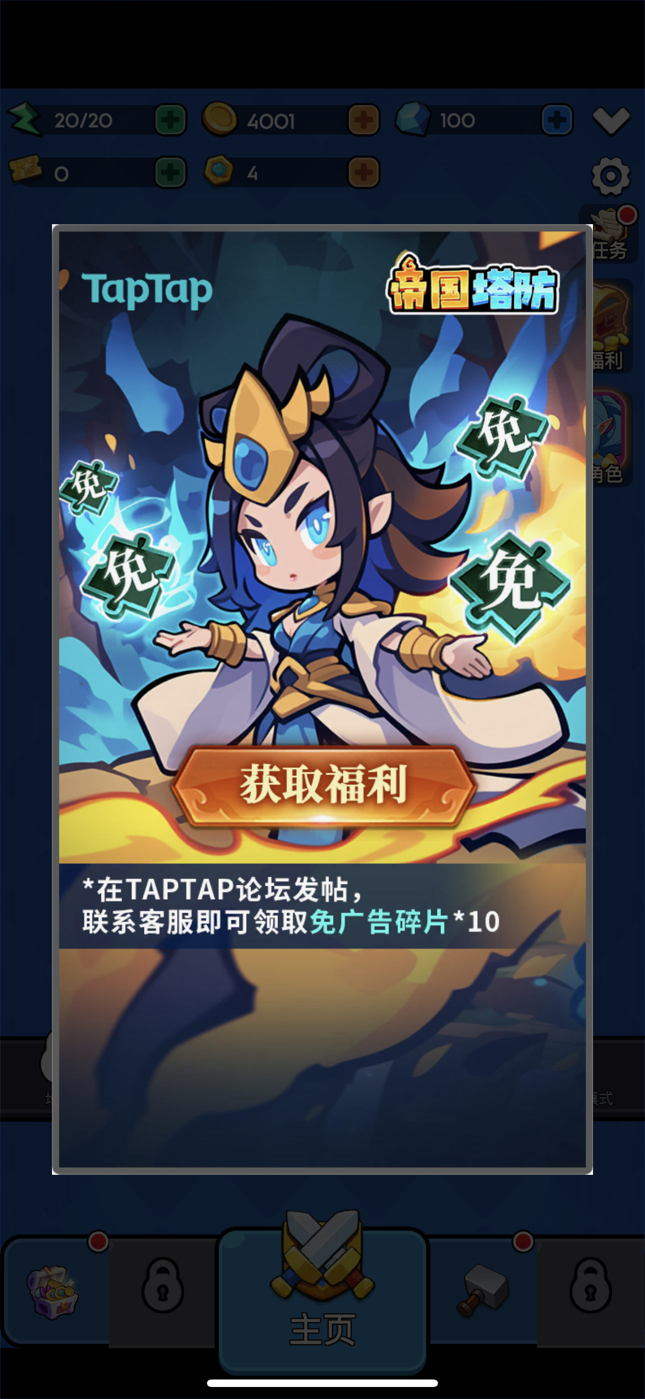 论坛发帖找客服就可以领取免广告碎片*10很好玩的一个游戏,不用氪金也可以玩的很爽
