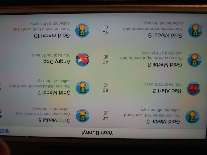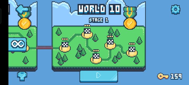 全关卡三星通关了,留个足印游戏特点:只有点击跳跃一种操作的平台跳跃游戏。印象:操作方面只觉得累,一直要反复点点点。关卡方面大部分关卡都没印象,只有很少一部分关卡和2,4,6,8章最后的boss关有印象。总的来说也就打发打发时间。