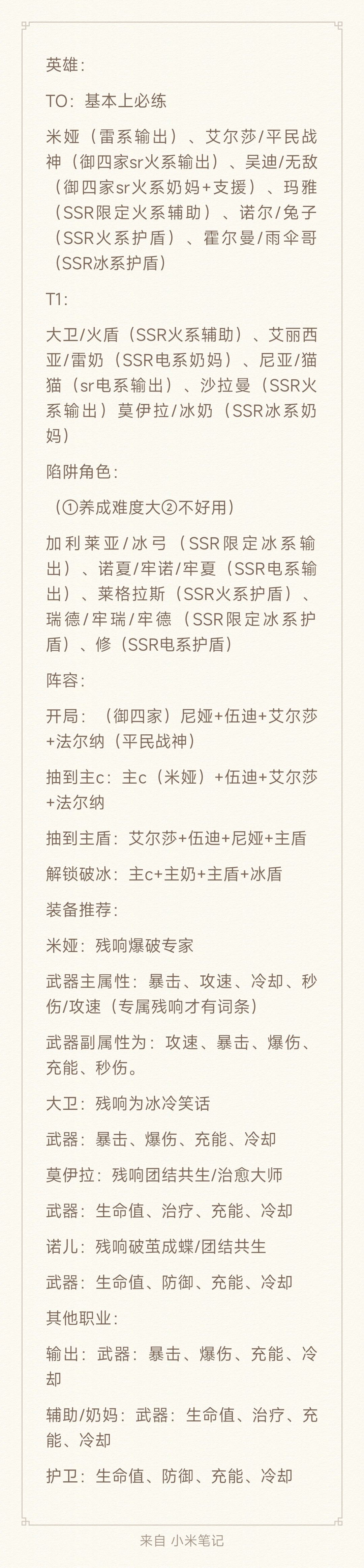 前言: ①开局福利 ②英雄推荐 ③钻石消耗 一:开局福利 ①兑换码: https://www.taptap.cn/moment/626072766650517287?share_id=8298940ec3b8&utm_medium=share&utm_source=copylink ②限时抽奖: https://tap.cn/lsCtqoZFT 二:英雄、阵容、武器推荐 ps阵容(续) 雷/火队