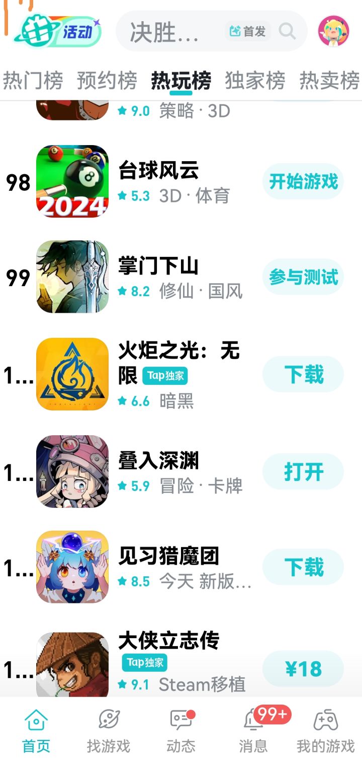 热玩榜已经掉到一百名开外了