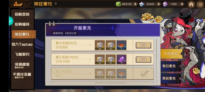 活动规则在上一次叠入深渊的游戏过程中进行过充值行为的玩家,联系客服发送相关信息登记参与活动,即可在即将开启的删档测试阶段中,获得对应价值的充值代币道具补偿活动奖励根据以前的累计充值金额数量,分三档奖励发放共200%代币数量:1、登录创建角色:送30%2、删测中首充后:送50%3、删测中充值金额等于以前累充金额:送120%活动说明1、如玩家在上一次叠入深渊中累计充值320元,则三档奖