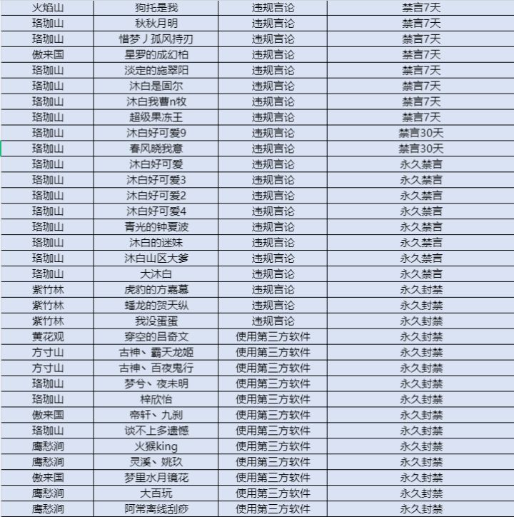 本帖将用于各位上仙举报公屏不当言论、使用第三方软件(包括但不限于除游戏安装包外的脚本、外挂、加速器、美化包等)、卡BUG等违规游戏行为,我们将对举报内容进行核实,并视情况给予禁言1天-永久禁言、封禁角色、封禁账号等惩罚。【举报格式】被举报人的区服:被举报人的ID:举报原因说明:违规行为截图:注意事项:1、还请各位玩家理性举报,切勿随意举报他人以影响我们处理所有玩家反馈的效率2、举报