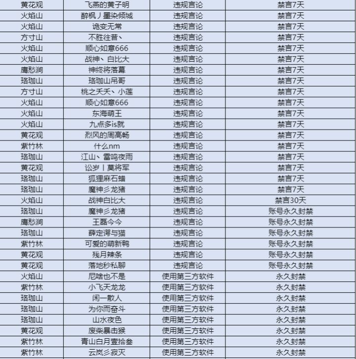 本帖将用于各位上仙举报公屏不当言论、使用第三方软件(包括但不限于除游戏安装包外的脚本、外挂、加速器、美化包等)、卡BUG等违规游戏行为,我们将对举报内容进行核实,并视情况给予禁言1天-永久禁言、封禁角色、封禁账号等惩罚。【举报格式】被举报人的区服:被举报人的ID:举报原因说明:违规行为截图:注意事项:1、还请各位玩家理性举报,切勿随意举报他人以影响我们处理所有玩家反馈的效率2、举报