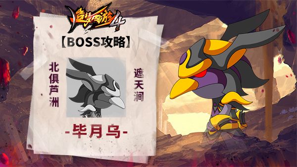 BOSS名称:毕月乌BOSS简介:二十八星宿之一,因天地大劫被煞气所污下界成精出没地点:遮天涧BOSS技能:>黑暗光球:向前方投掷三个光波黑球>黑月庇护:在脚下召唤魔法阵,毕月乌处于魔法阵上将获得回血,敌人处于魔法阵上将损血>黑焰阴燃:在敌人身上召唤黑色火焰,持续燃烧敌人法力并造成魔法伤害>黑夜恐惧:面朝毕月乌的敌人会被恐惧并受到伤害攻略:这个地图景色真不错,可惜天上会随机降下黑色
