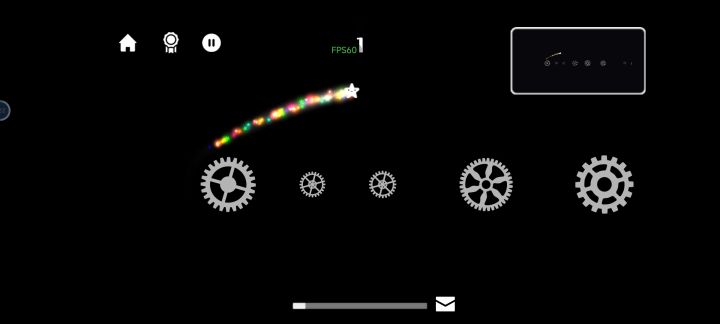 作为一个休闲游戏来说还不错,相同玩法在其他地方也见到过,单手指即可操控,点击让星星⭐落在齿轮上,按住蓄力松手发射,根据蓄力程度和发射角度不同,星星会按照物理规则进行抛物线轨迹移动。可以一口气越过多个齿轮,从而形成信仰之跃,但镜头跟随上下空间有限,无法落在镜头外的齿轮上。