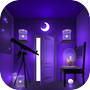初始画面为门画面,左边抽屉发现还缺一个部件,底部五角星旁有个六边形,后退左转看到两个五角星中间有个六边形,点望远镜观察,按右边看两组顺序,一组为圆月,弧月,右半月,弧月。另一组星球边朝向为右上,横,右下,上。 后退继续左转开桌子左边抽屉得棒子,看墙上墙洞里可看到五角星中间为三角形,且提示NEWMOON。后退继续左转点柜子右边抽屉打开看到字母及位置,柜子下面星星中间有四边形,此时点棍子放大观察看到