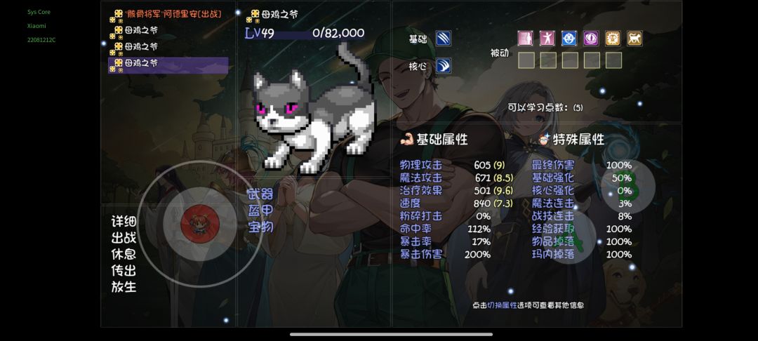 战斗系统: 战斗时,可以设置战斗界面,如战斗速度,直接调成四倍速,游戏体验会更好。 宠物可自己选择自动攻击或者自己操控,打boss时建议自己手动操控,平时自动就行。 游戏内敌人图片可调整大小,根据自己喜好调整。