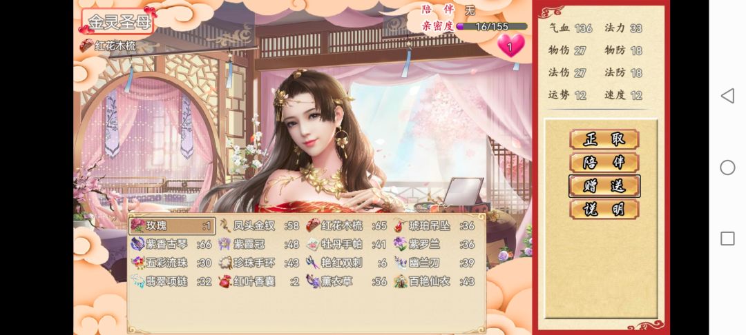 飞天后左边有欢乐家园 ,买完房子后进去找侍女,赠送礼物获取亲密度 亲密度升级后点陪伴角色能提升对应角色属性,5级亲密度后能正取,礼物主要来源考抓鬼 四圣副本获得